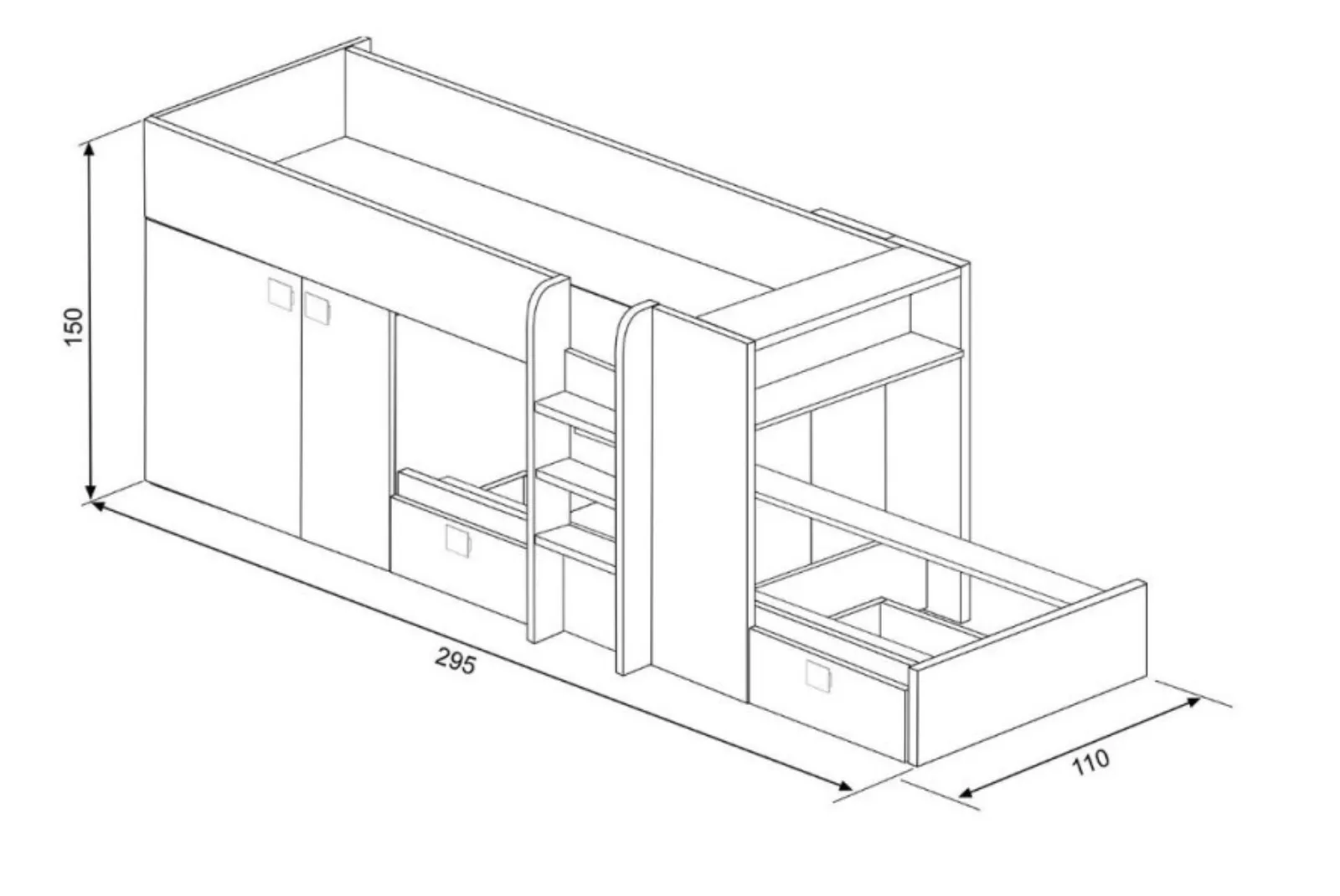 - Dimensioni: L.295 – Prof.110 – H.150 cm