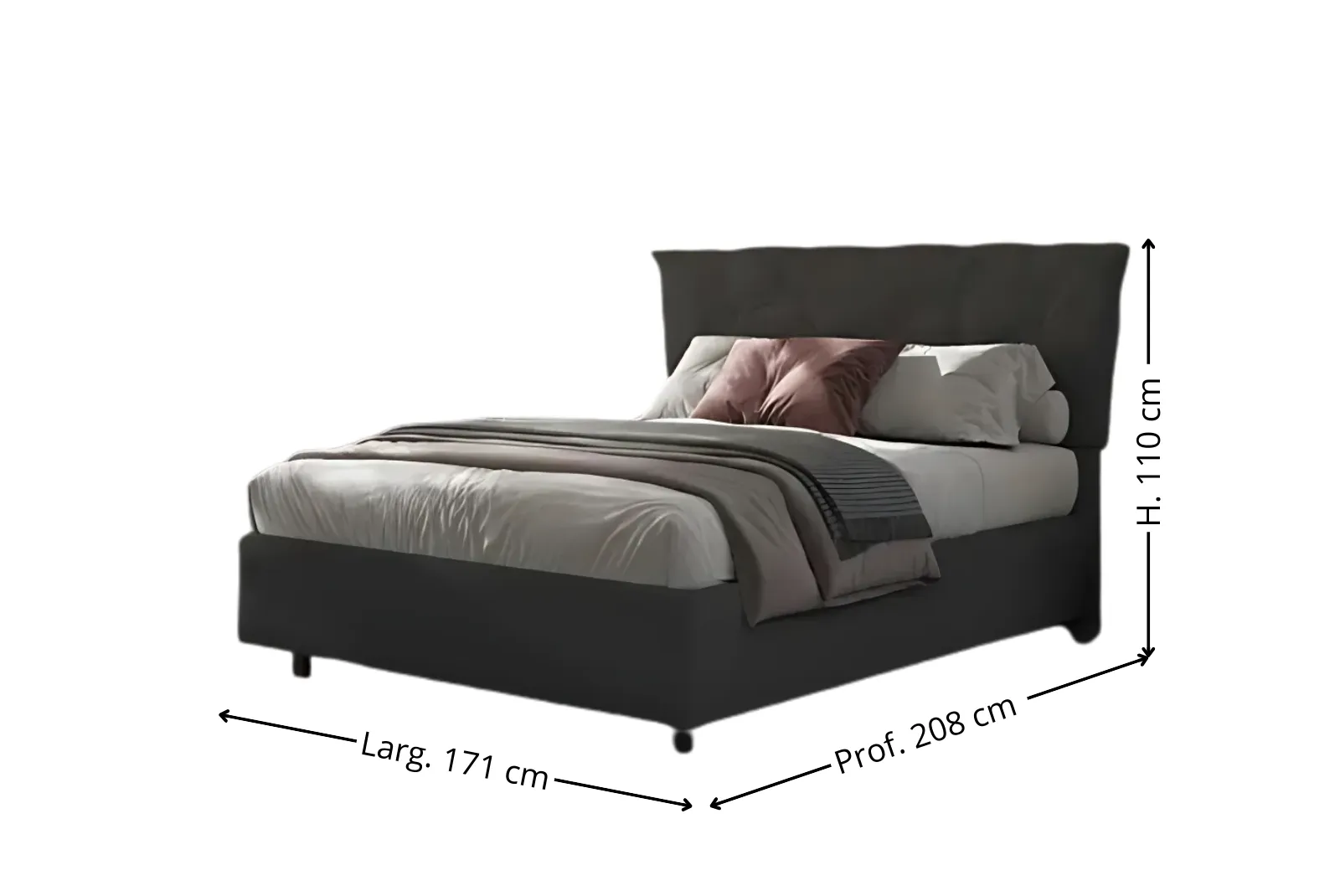 | Dimensioni Letto contenitore Bergen | Larghezza 171 – Profondità 208 – Altezza 110 cm |