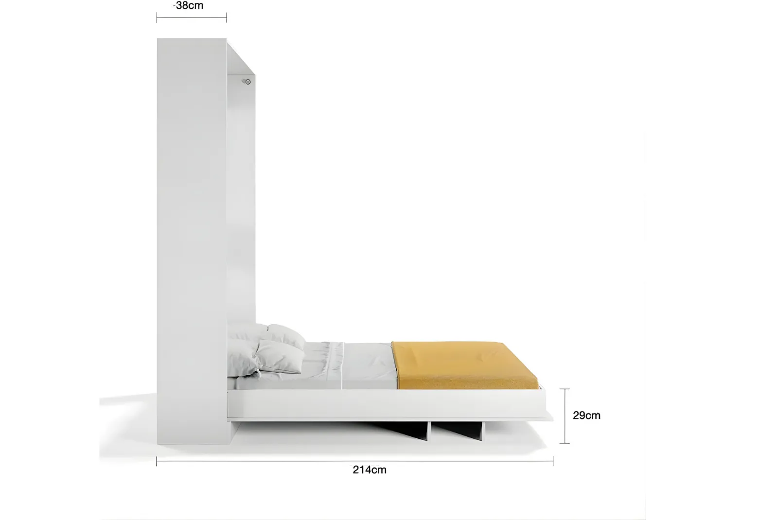 Letto chiuso: L.164 – Prof.38 – H.221 cm Letto aperto: L.164 – Prof.214 – H.221 cm