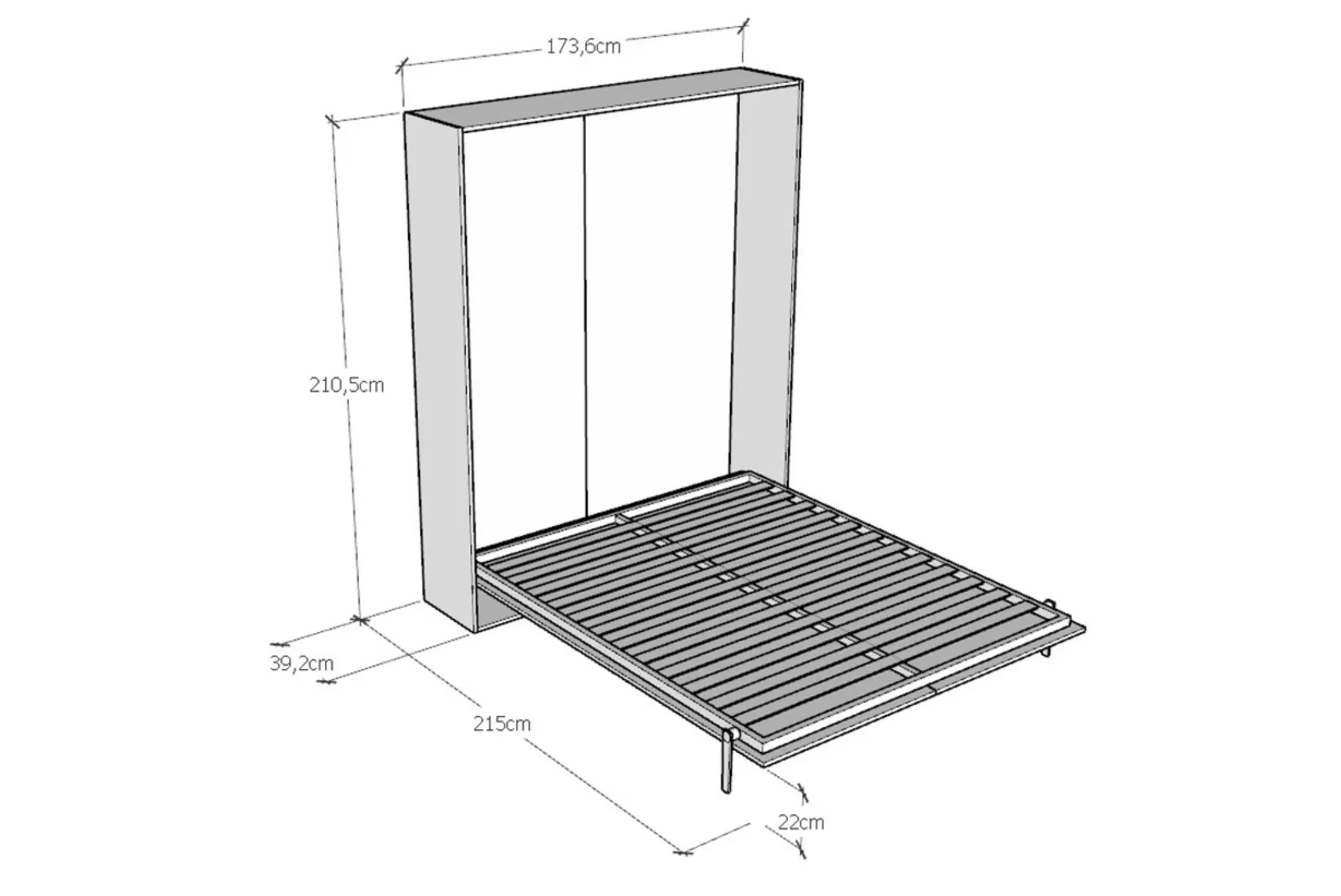 - Dimensioni letto chiuso: L.173,6 – Prof.39,2 – H.210,5 cm