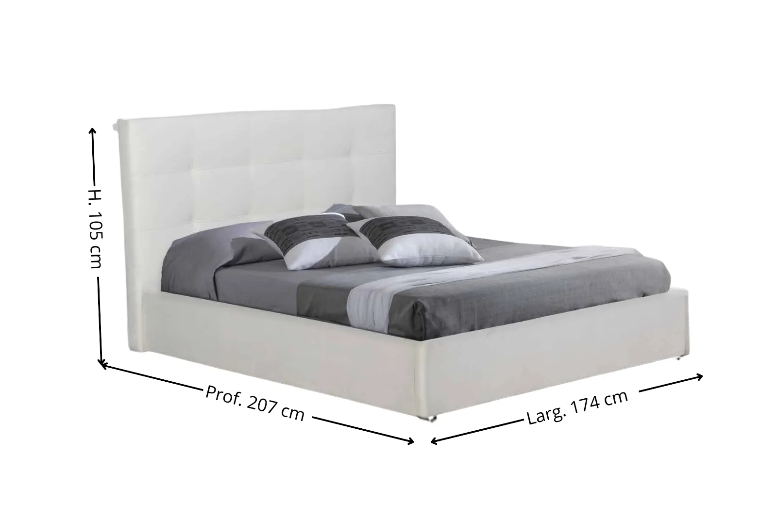 - Dimensioni: Larghezza 174 – Profondità 207 – Altezza Testiera 105 cm