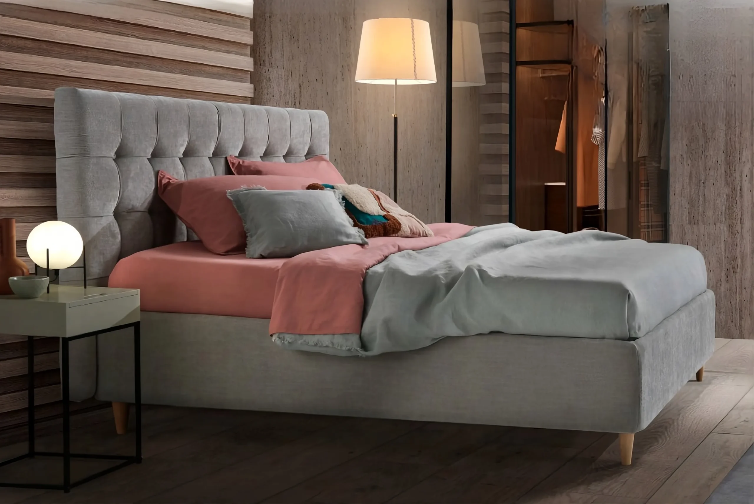 “LETTO EDEN COME FOTO – Tessuto Delta 9307 con Piedini cod. pie031 H.12 – Naturale”