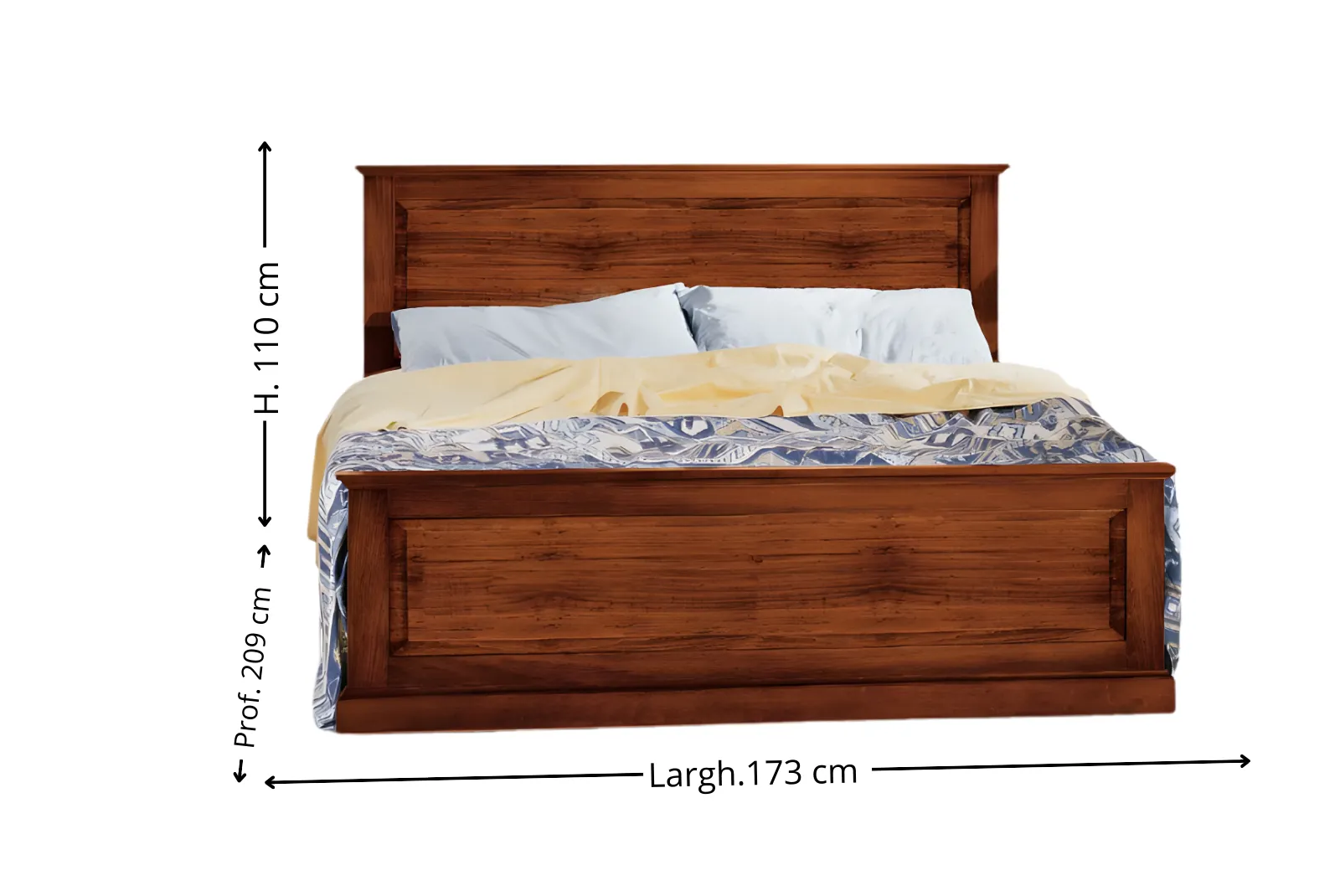 - Dimensioni: Larghezza 173 – Profondità 209 – H. Testiera 110 – H. Pediera 61 cm
