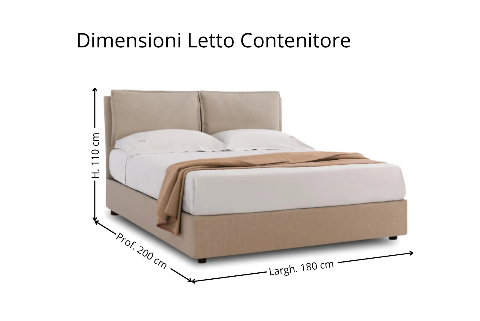 Larghezza 180 – Profondità 200 – Altezza testiera 110 cm