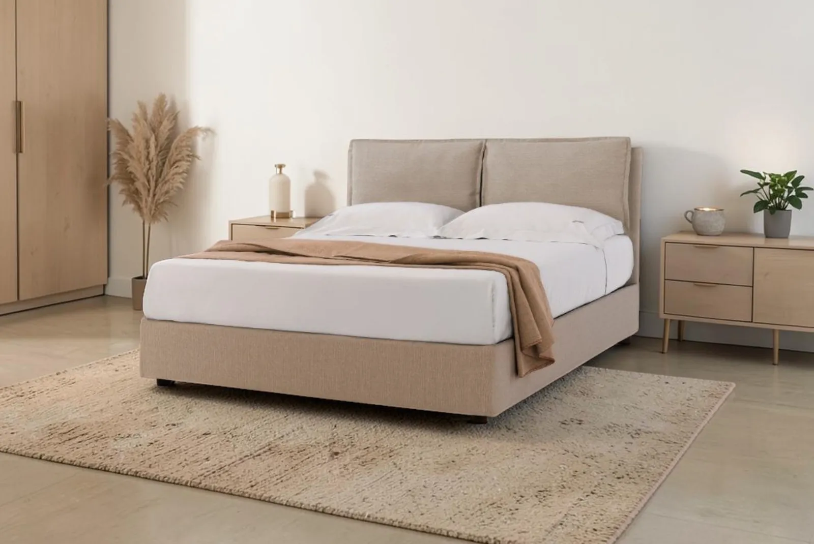 Il Letto matrimoniale Mirta con contenitore + Materasso rappresenta una nuova linea concentrata sulla versatilità e praticità per ottimizzare lo spazio in camera da letto. Oltre a offrire un ampio spazio per l’archiviazione, il letto con contenitore mantiene un design elegante e moderno, rendendolo un complemento d’arredo ideale per chi desidera unire funzionalità e stile.