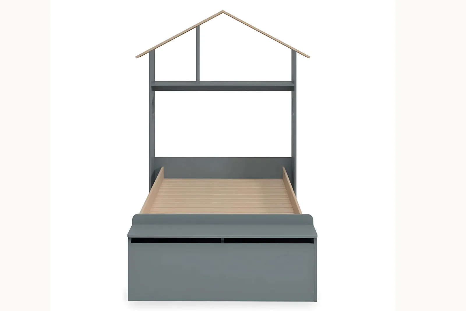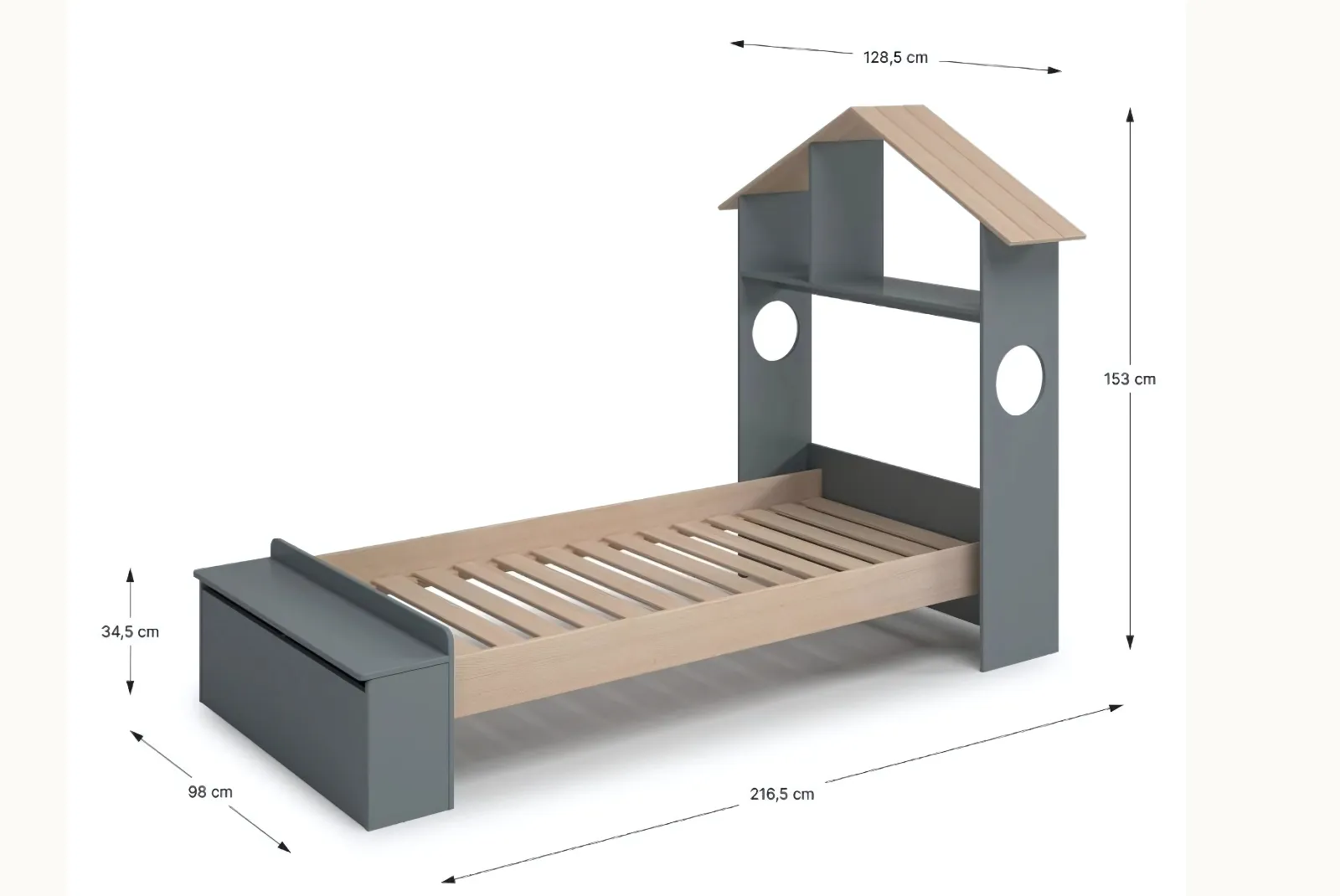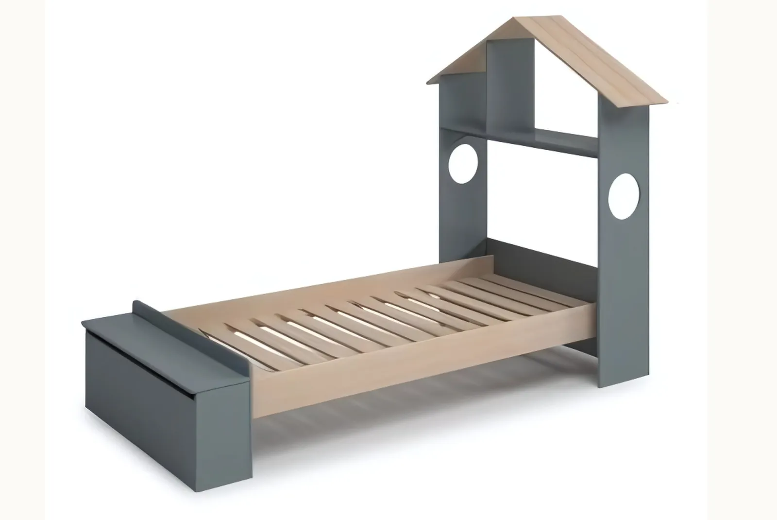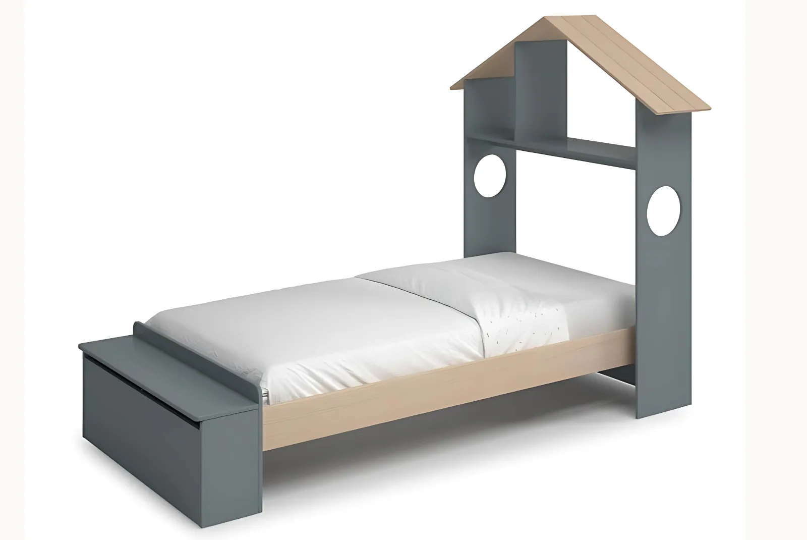 - Struttura: Testiera a forma di casetta, pediera contenitore – materiale MDF/ Pino