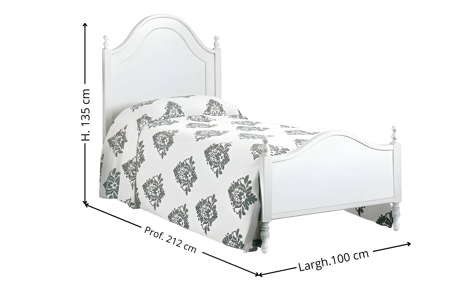 | Dimensione Letto Singolo | Larghezza 100 – Profondità 212 – Altezza 135 cm |