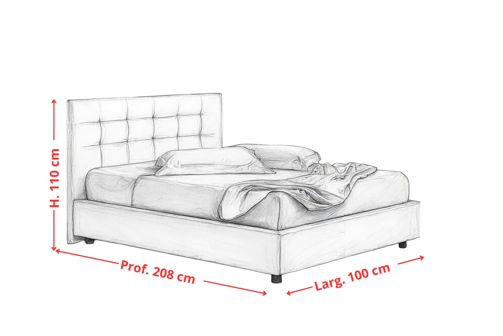 - Dimensioni letto: Larghezza 100 – Profondità 208 – Altezza testiera Letto 110 cm