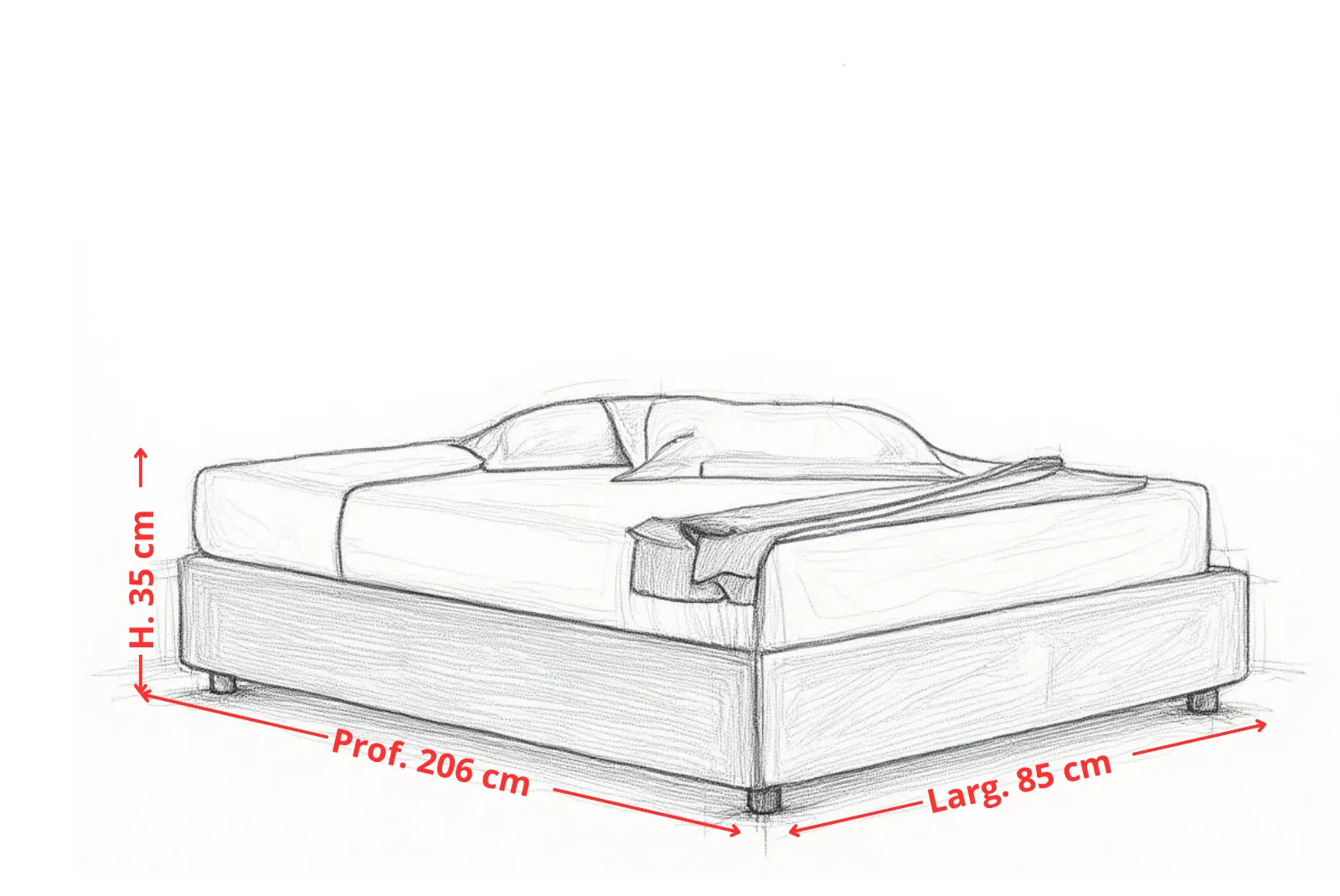 - Dimensioni letto: Larghezza 85 – Profondità 206 – Altezza Letto 35 cm