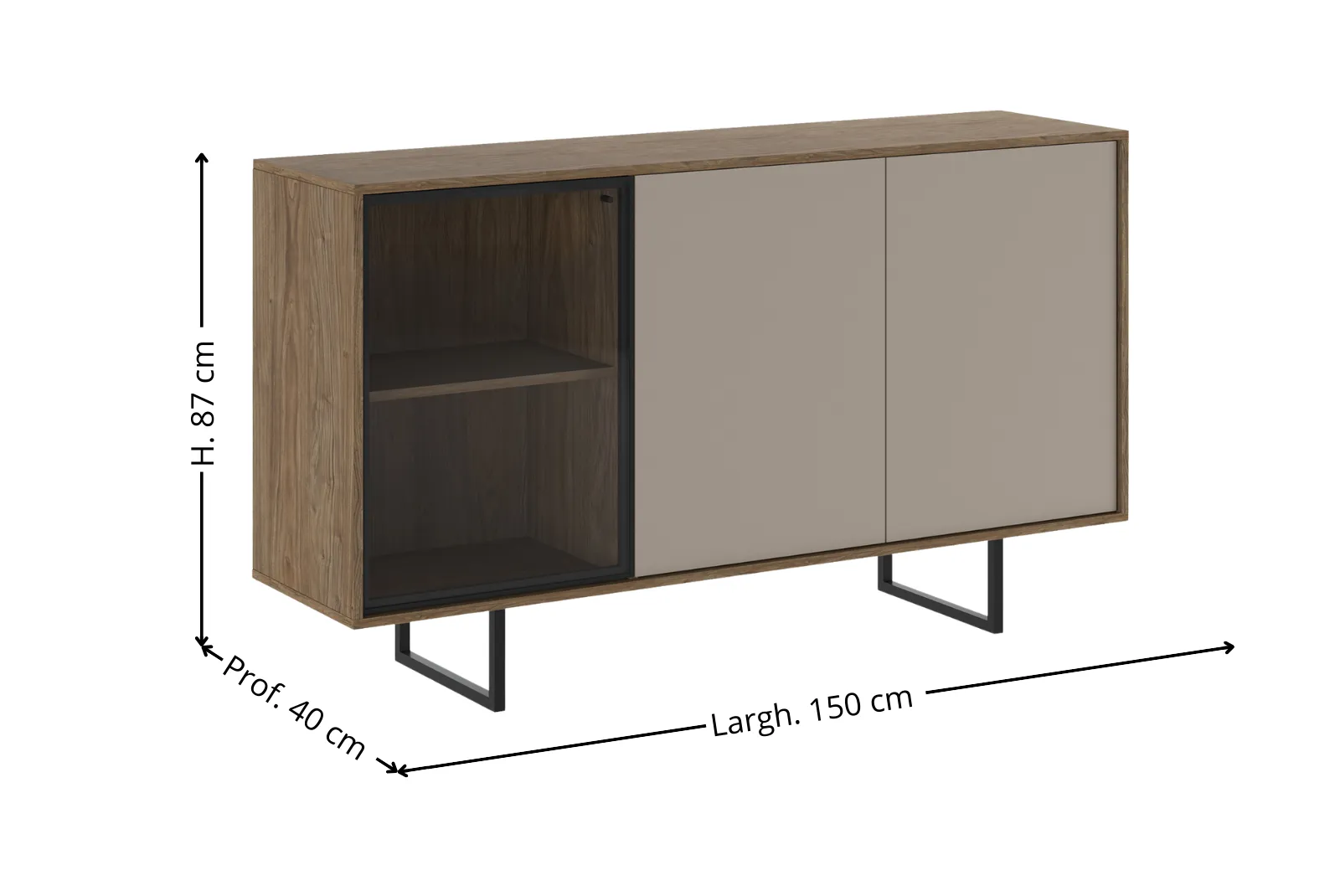- Dimensioni madia: Larghezza 150 – Profondità 40 – Altezza 87 cm