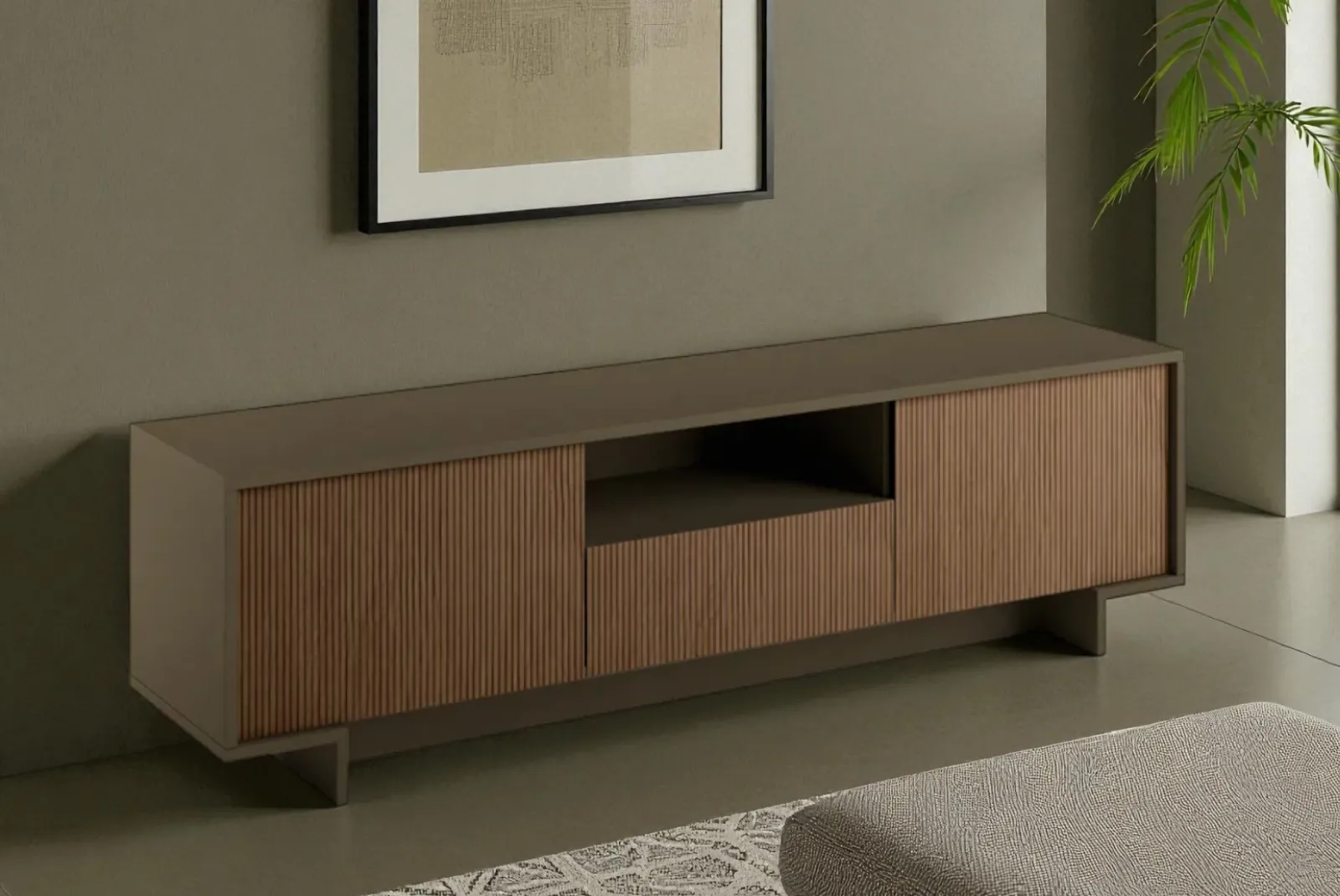 Stai cercando un complemento d’arredo elegante, funzionale e versatile allo stesso tempo? Allora la nostra Madia Kiara Porta Tv Cannettato Scuro è la soluzione perfetta per te!