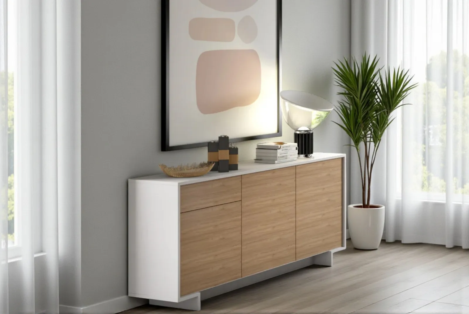Stai cercando un complemento d’arredo elegante, funzionale e versatile allo stesso tempo? Allora la nostra Madia Ondina Noce e Bianco è la soluzione perfetta per te!