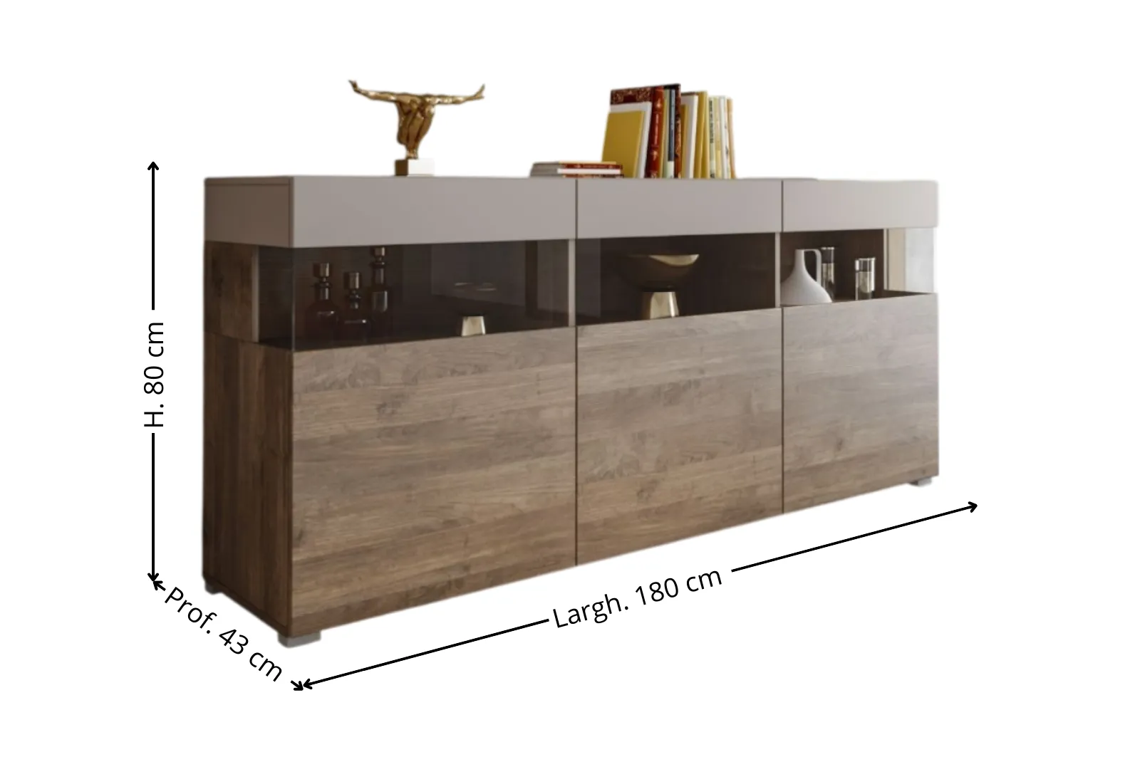 • Dimensioni madia: Larghezza 180 – Profondità 43 – Altezza 80 cm
