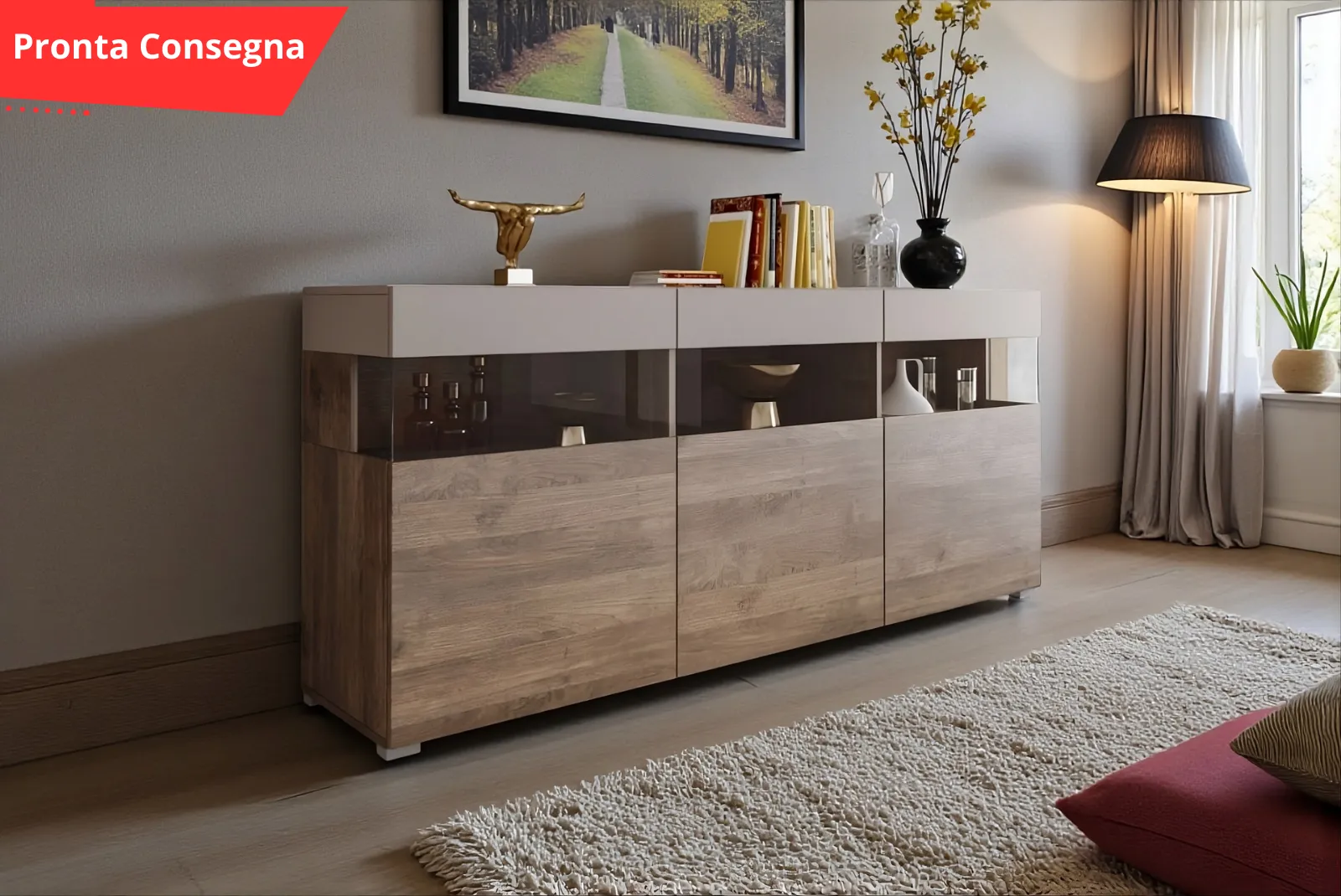 La madia Posilippo frontale noce/cashmere “Pronta Consegna” aggiungere un tocco di eleganza e luminosità a qualsiasi ambiente. Con la sua composizione unica e funzionale lo rende un complemento d’arredo perfetto per ogni ambiente abitativo.