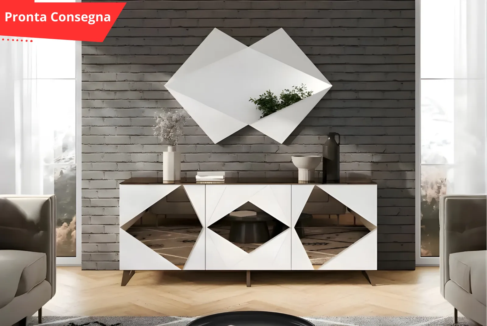 - Finitura ante: Bianco Lucido con specchi sagomati fumé