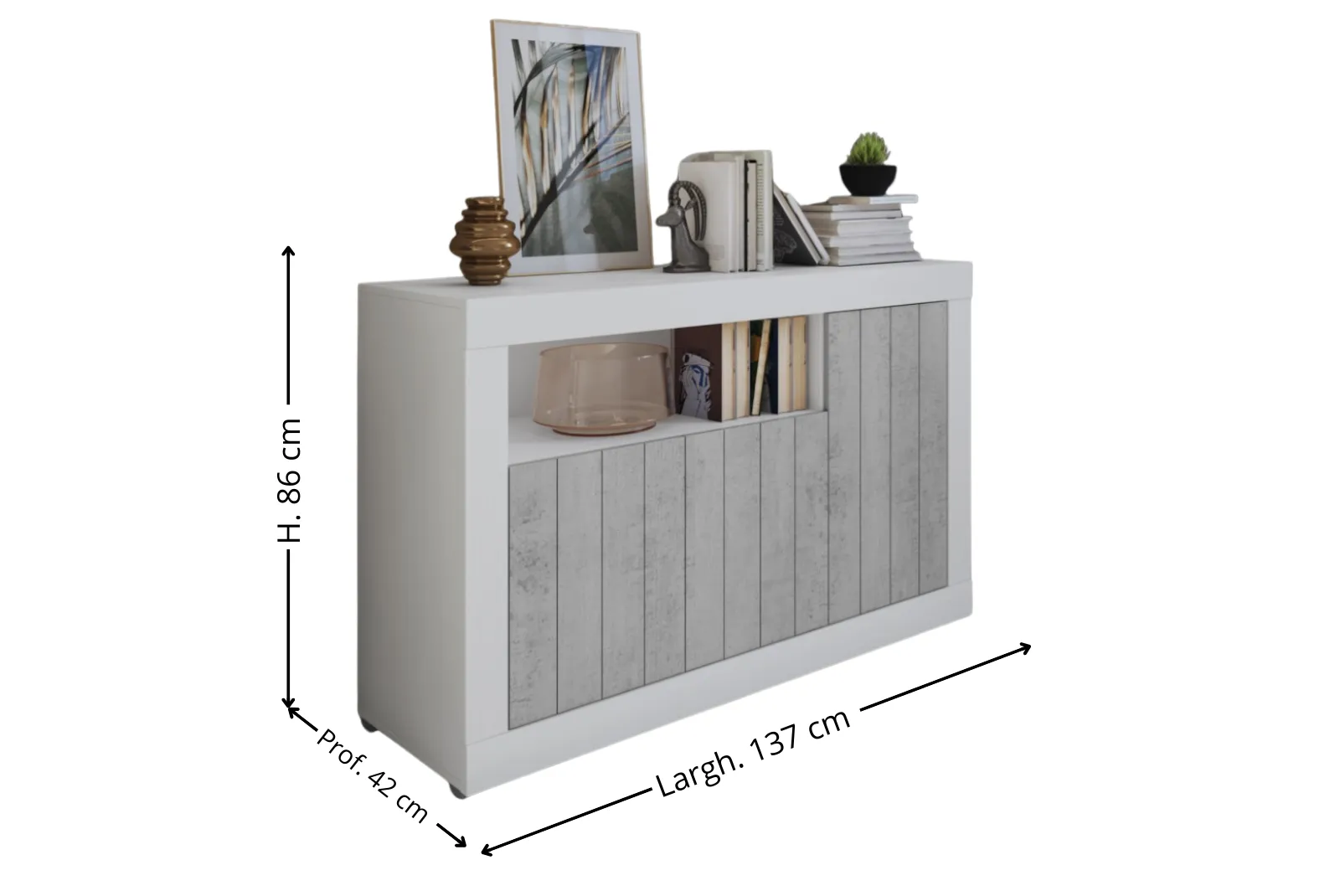• Dimensioni madia: Larghezza 137 – Profondità 42 – Altezza 86 cm