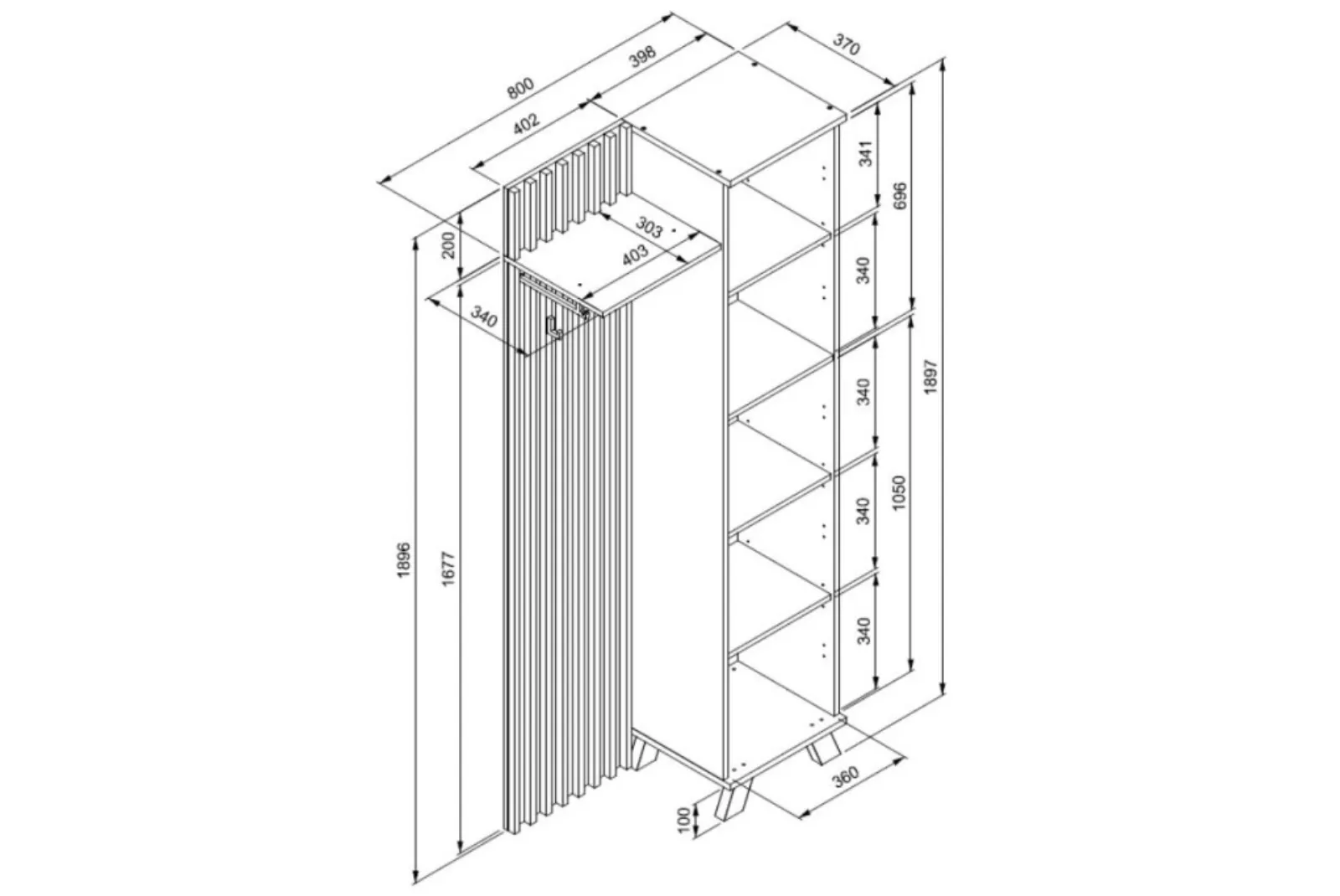 • Dimensioni: Larghezza 80 – Profondità 37 – Altezza 190 cm