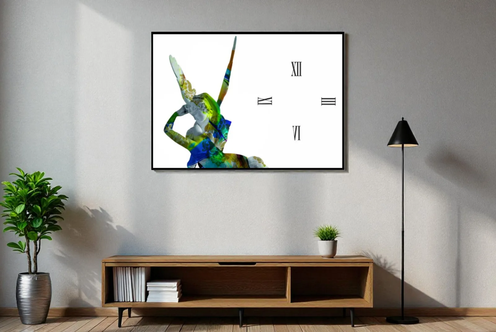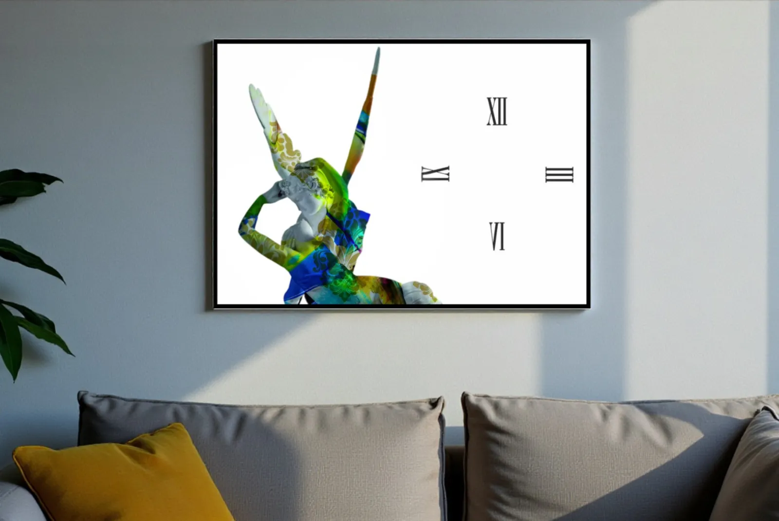 Orologio Amore e Psiche – Stampa in vetro temperato da parete perfetto per valorizzare ogni spazio della casa con un tocco elegante, moderno e originale. Realizzato con materiali di alta qualità per un tocco di classe in ogni ambiente. Design unico con stampa tridimensionale.