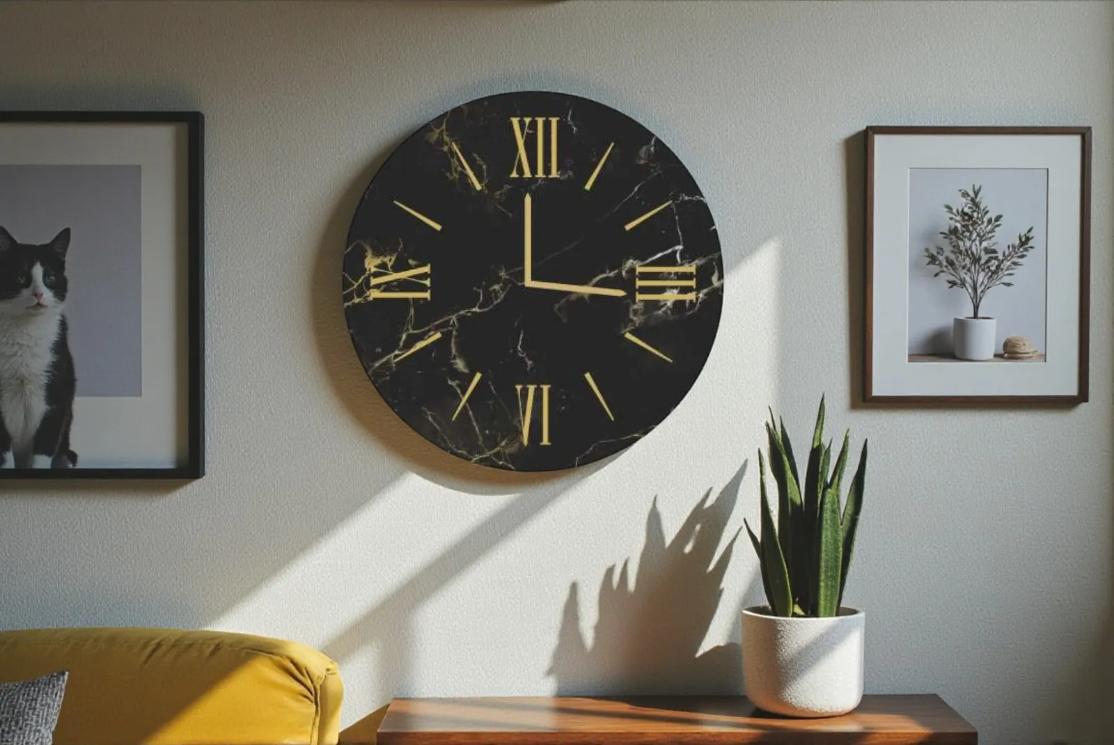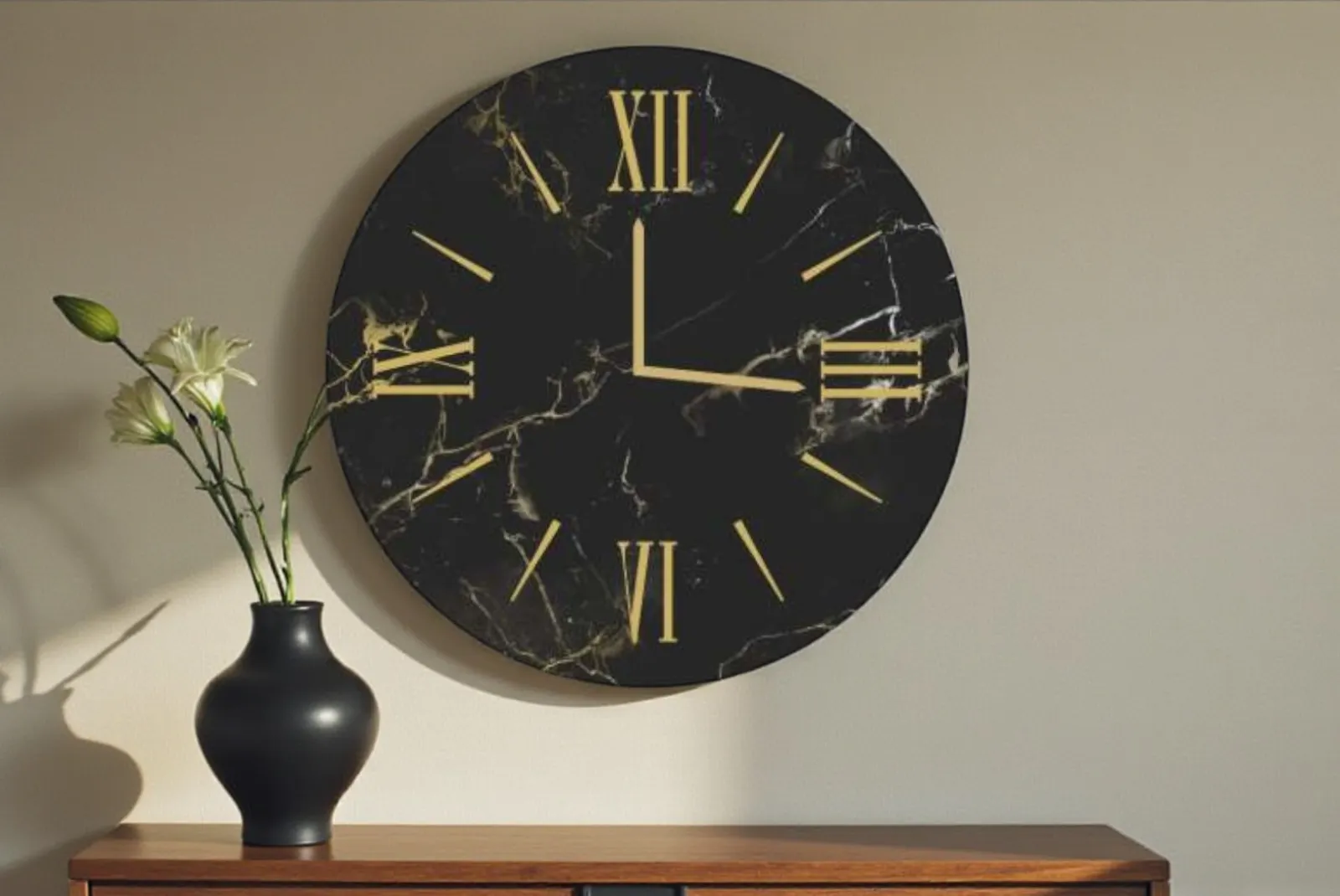 - Modello: Orologio Marmo Nero Oro – Stampa in vetro