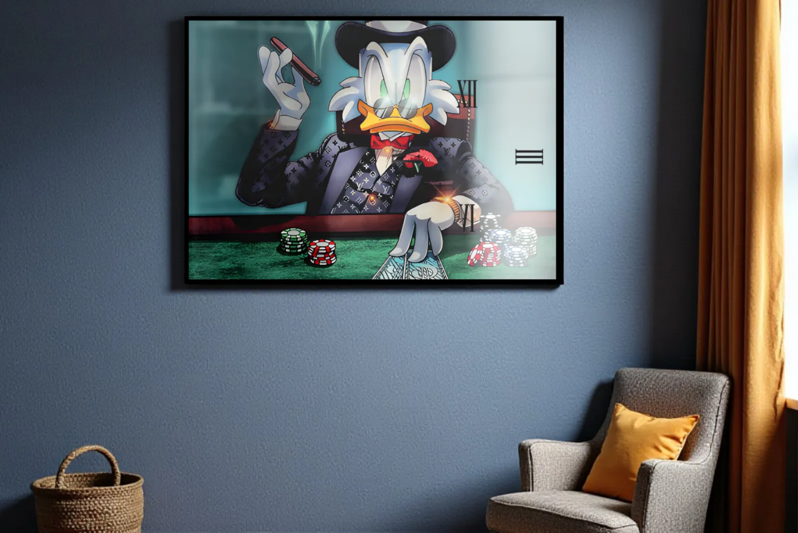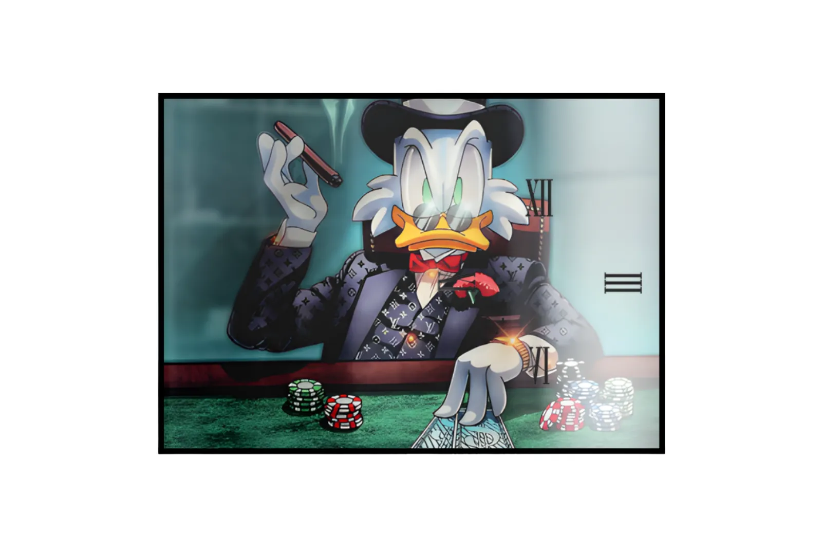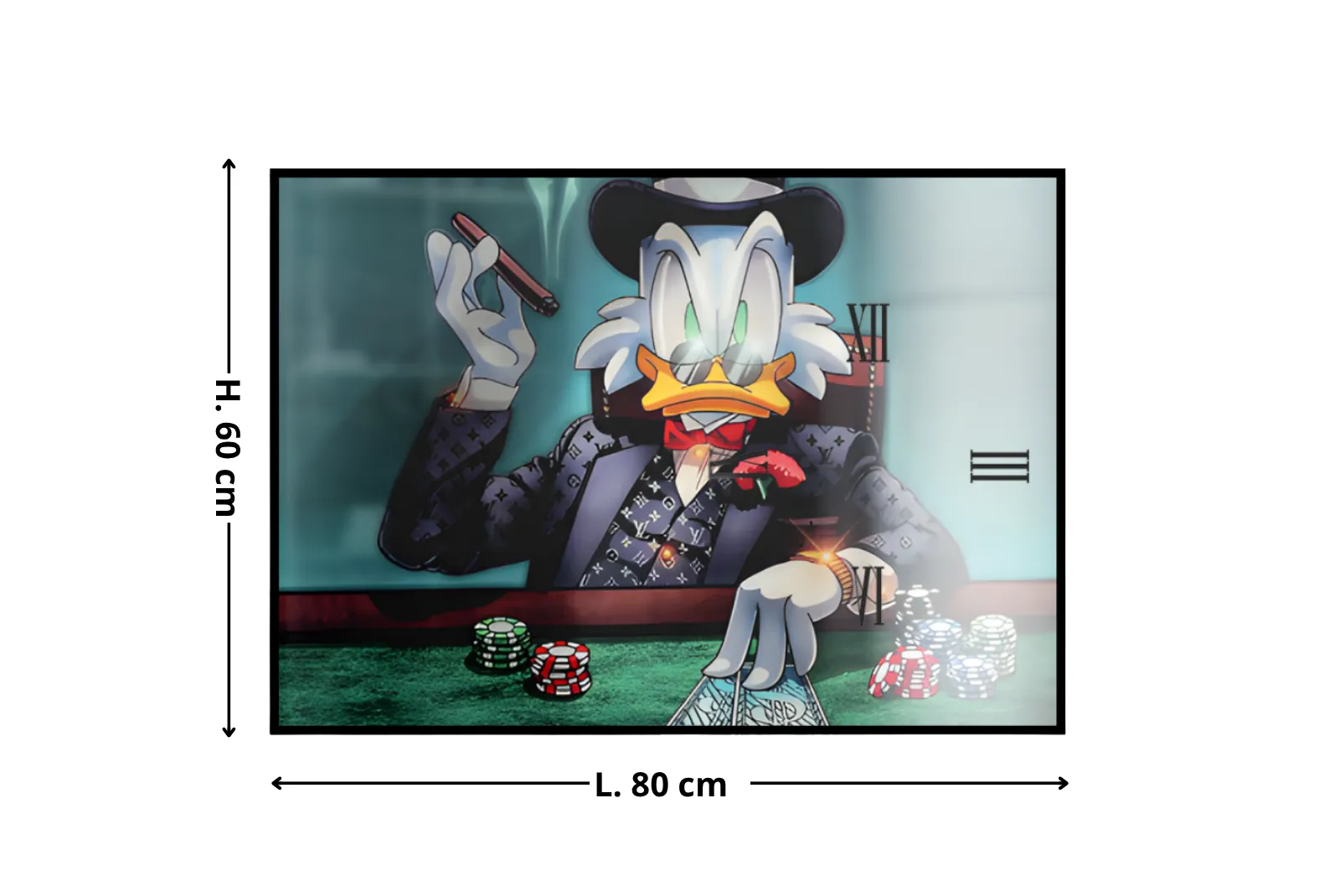 Orologio Quadro Blu Paperone – Stampa in vetro temperato da parete perfetto per valorizzare ogni spazio della casa con un tocco elegante, moderno e originale. Realizzato con materiali di alta qualità per un tocco di classe in ogni ambiente. Design unico con stampa tridimensionale.