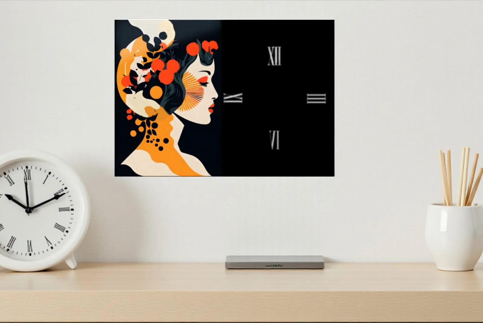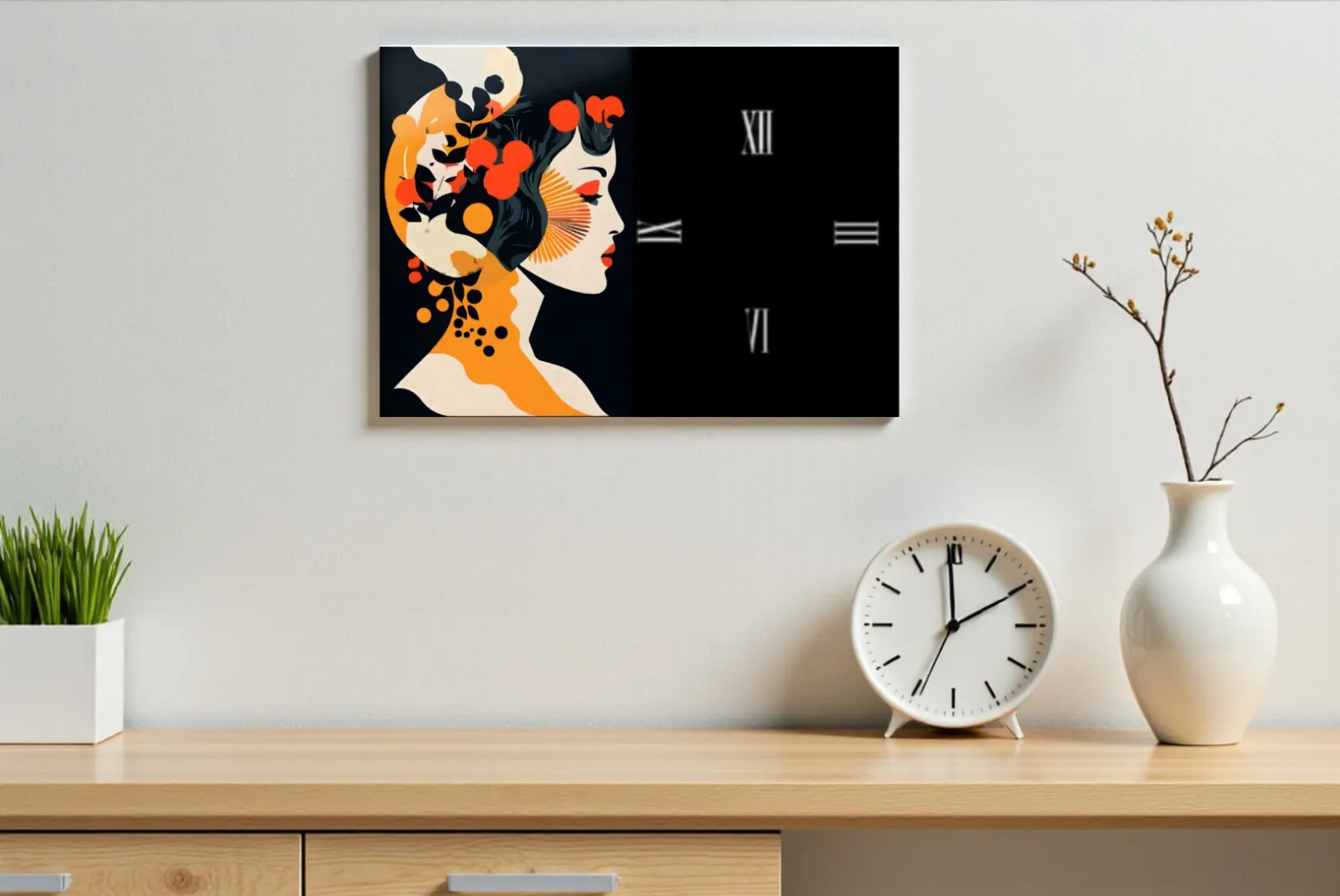 Orologio Geisha – Stampa in vetro temperato da parete perfetto per valorizzare ogni spazio della casa con un tocco elegante, moderno e originale. Realizzato con materiali di alta qualità per un tocco di classe in ogni ambiente. Design unico con stampa tridimensionale.