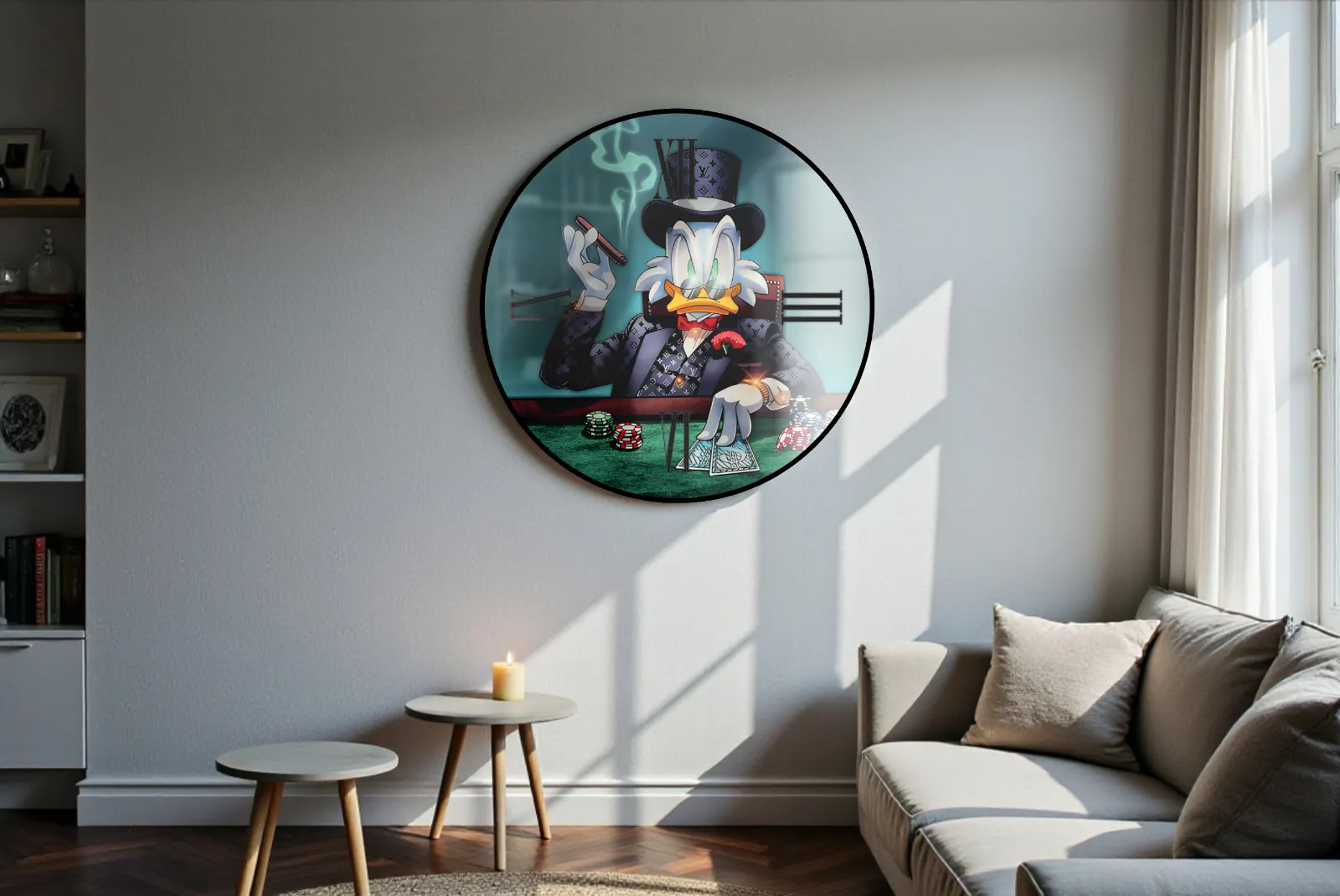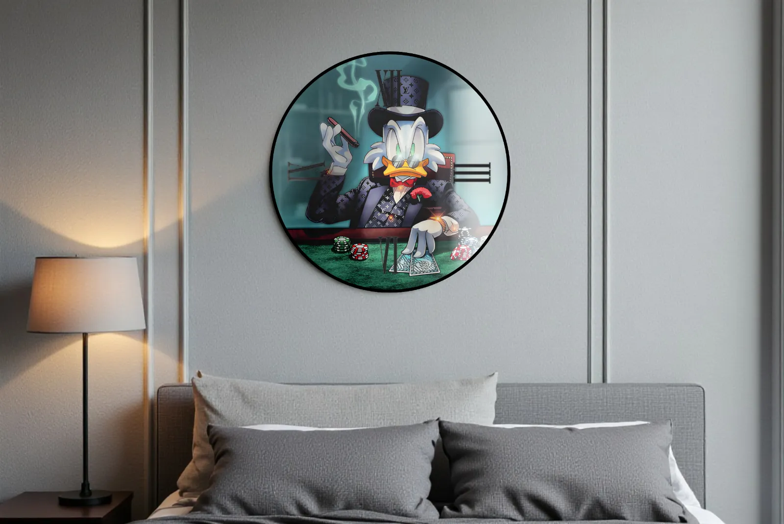 Orologio Tondo Blu Paperone – Stampa in vetro temperato da parete perfetto per valorizzare ogni spazio della casa con un tocco elegante, moderno e originale. Realizzato con materiali di alta qualità per un tocco di classe in ogni ambiente. Design unico con stampa tridimensionale.