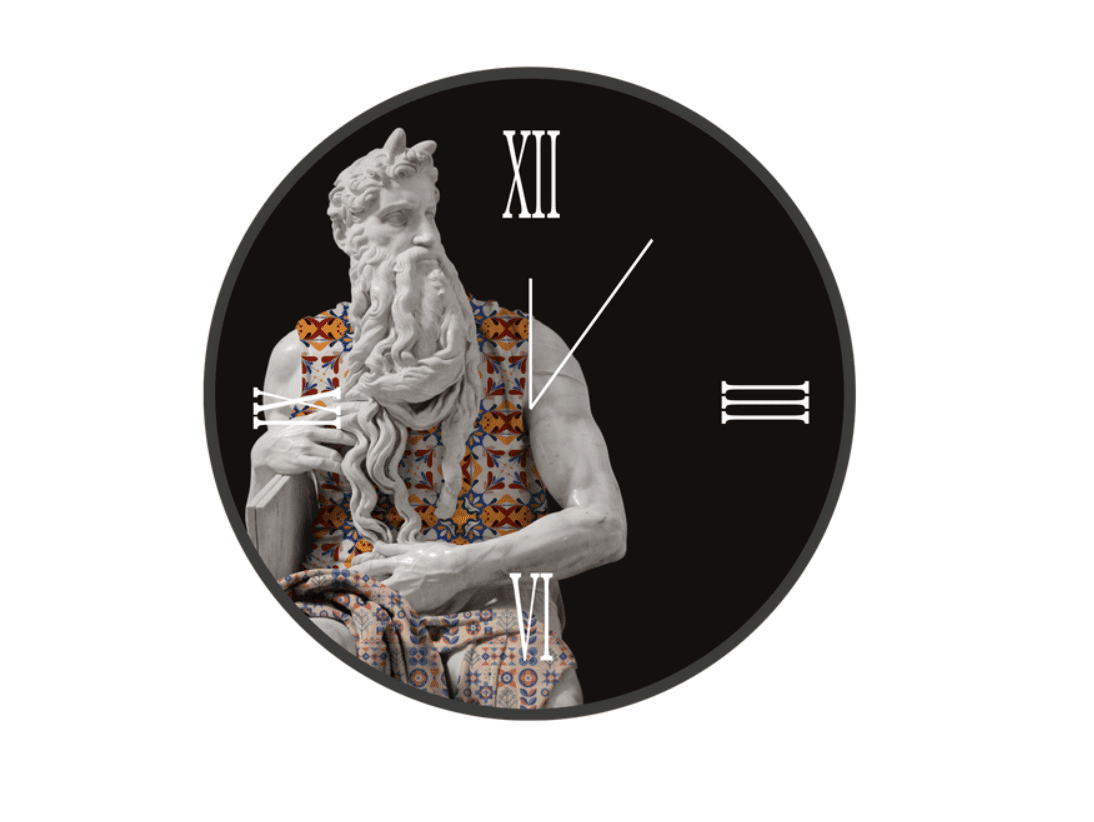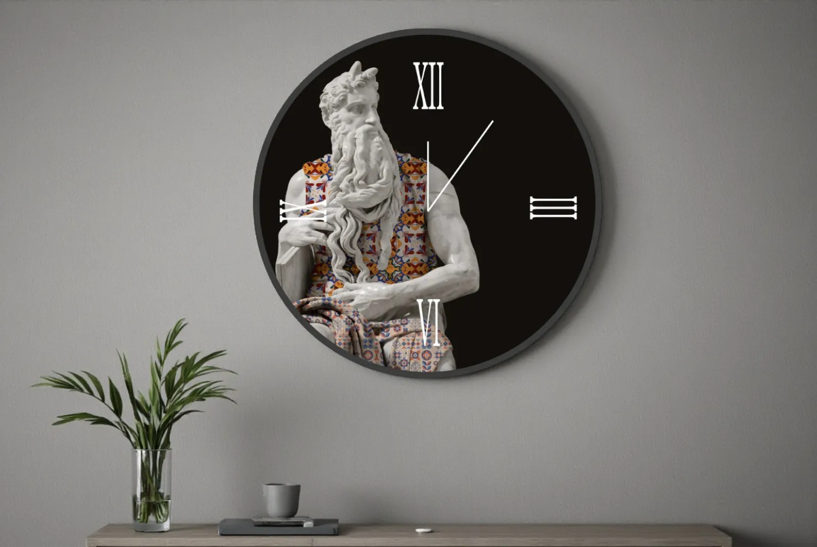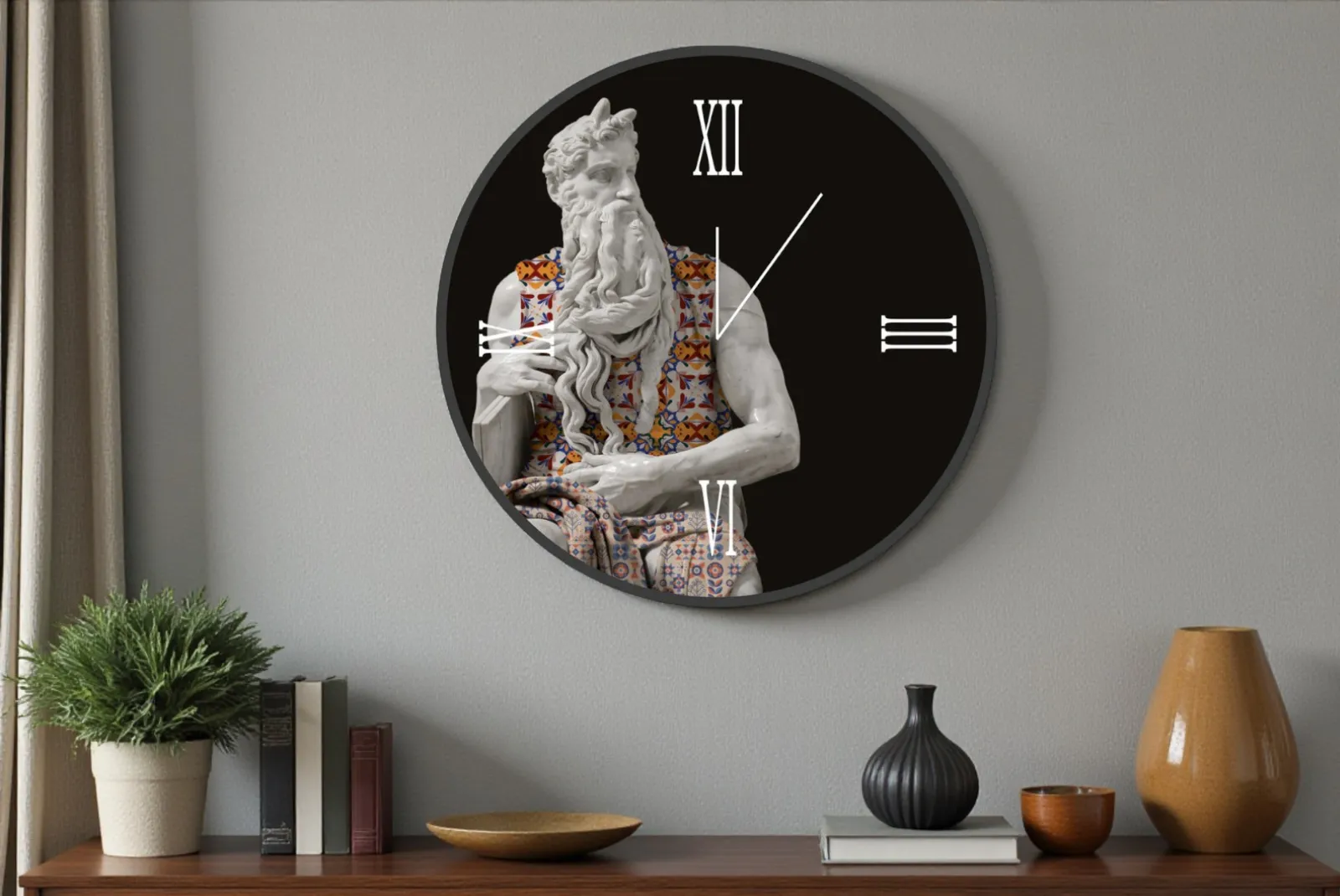 Orologio Tondo Mosè – Stampa in vetro temperato da parete perfetto per valorizzare ogni spazio della casa con un tocco elegante, moderno e originale. Realizzato con materiali di alta qualità per un tocco di classe in ogni ambiente. Design unico con stampa tridimensionale.