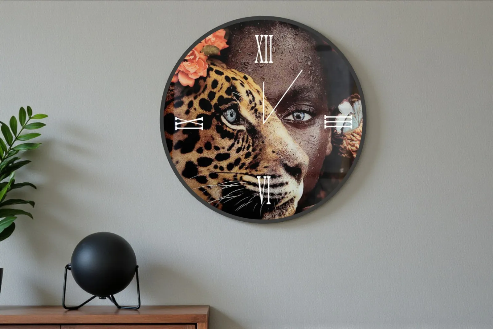 Orologio Tondo Safari- Stampa in vetro temperato da parete perfetto per valorizzare ogni spazio della casa con un tocco elegante, moderno e originale. Realizzato con materiali di alta qualità per un tocco di classe in ogni ambiente. Design unico con stampa tridimensionale.