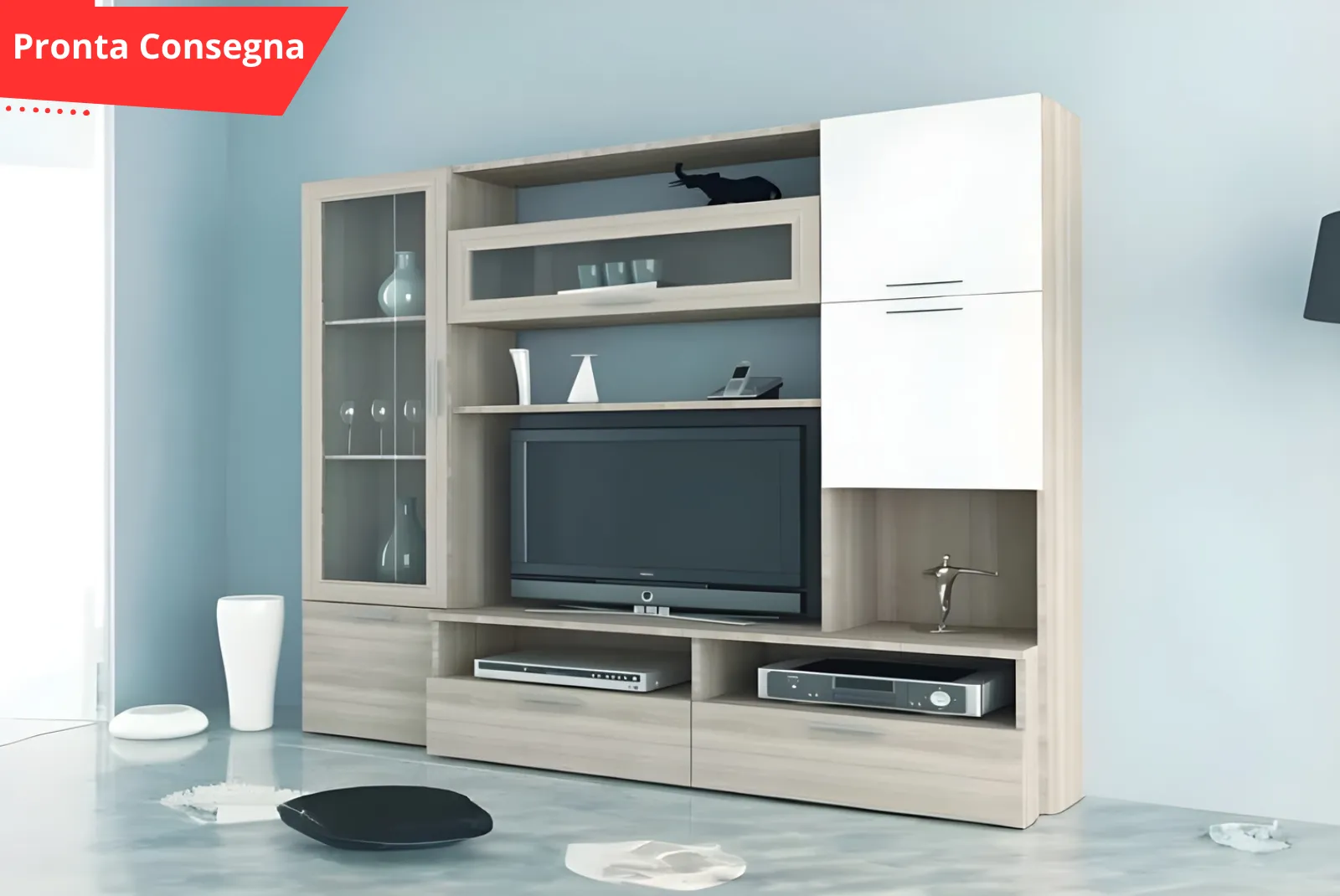 Parete Attrezzata – Amora “Pronta Consegna”! Non perdere questa occasione per arredare il tuo soggiorno con stile e funzionalità.