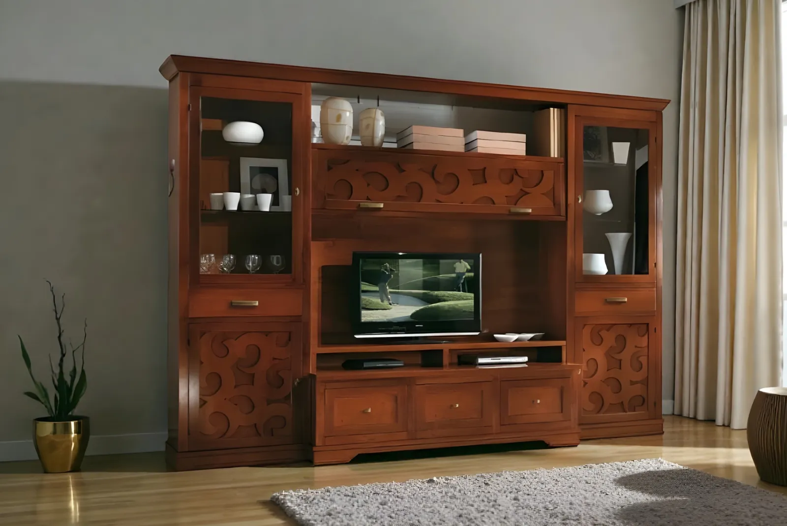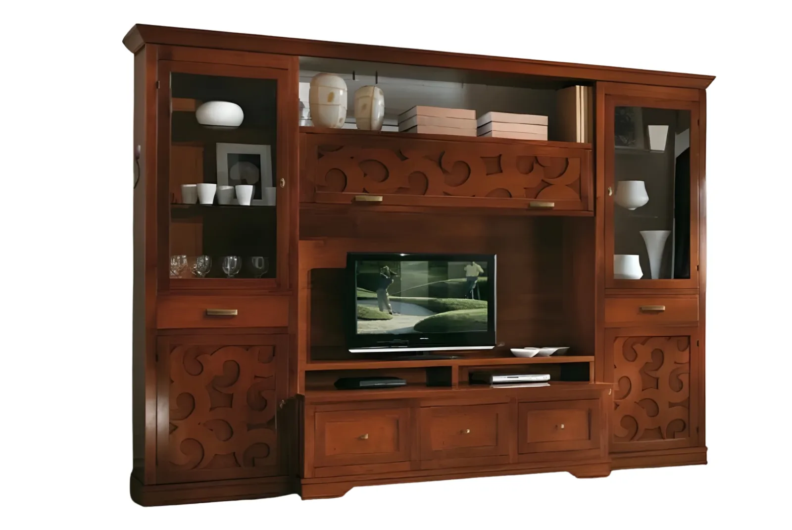 La Parete Attrezzata – Bassano con decoro a rilievo è un elemento d’arredo molto versatile e funzionale, ideale per ottimizzare lo spazio in soggiorno o in altre stanze della casa. Si tratta di una struttura modulare che può includere scaffali, cassetti, mensole e spazi appositi per ospitare dispositivi elettronici come TV, stereo o console di gioco.