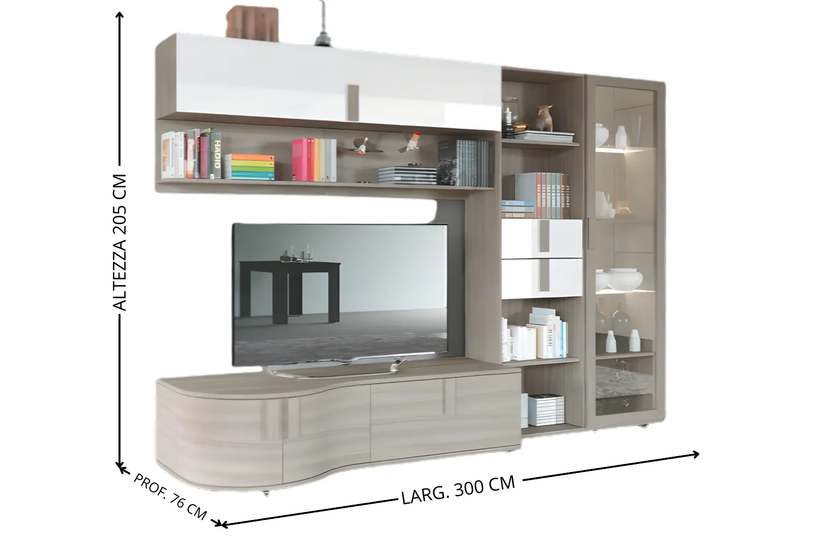 - Dimensioni Parete: L 300 cm – P 35/76 cm – H 205 cm