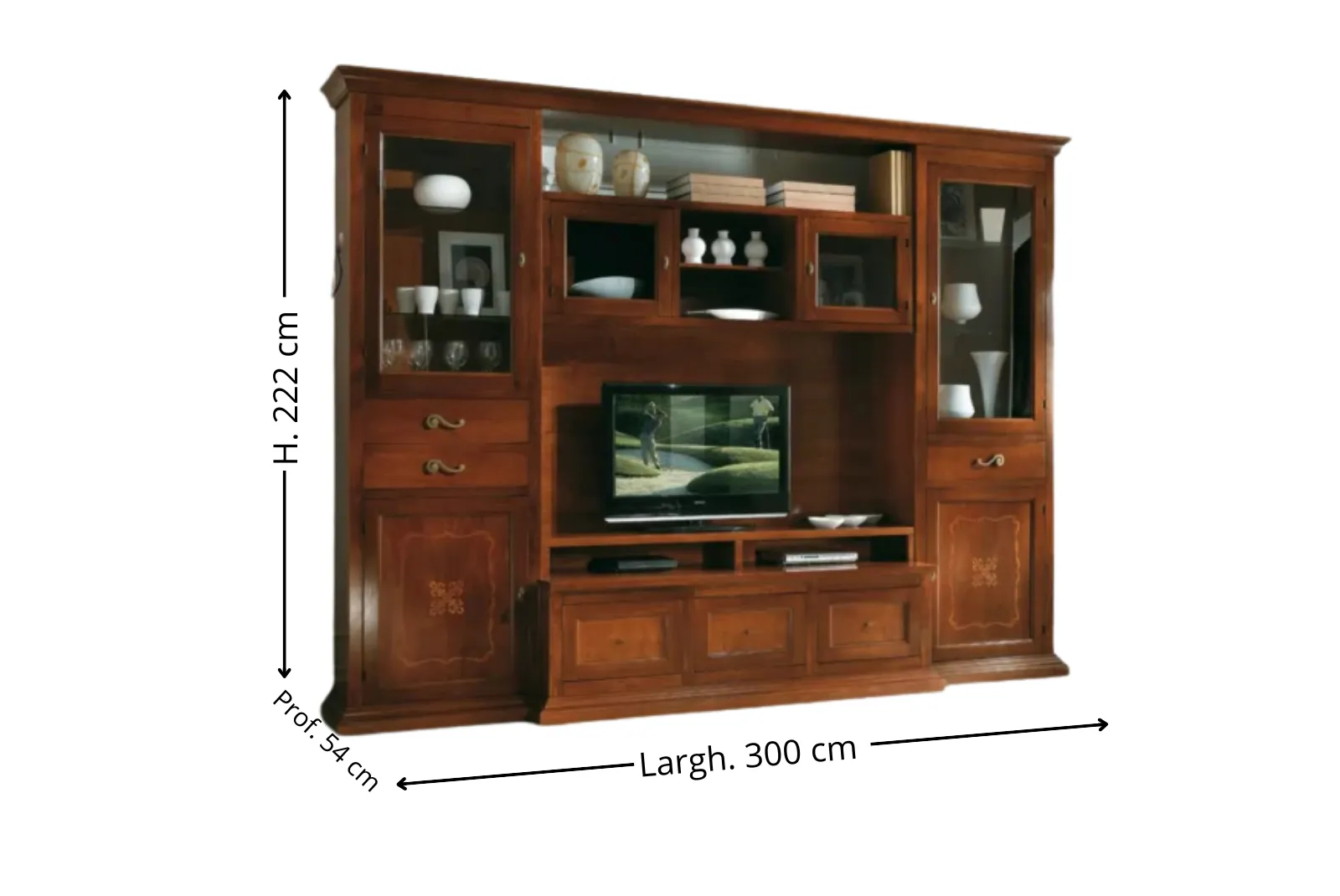 | Dimensioni Parete Attrezzata | Larghezza 300 – Profondità 54 – Altezza 222 cm |