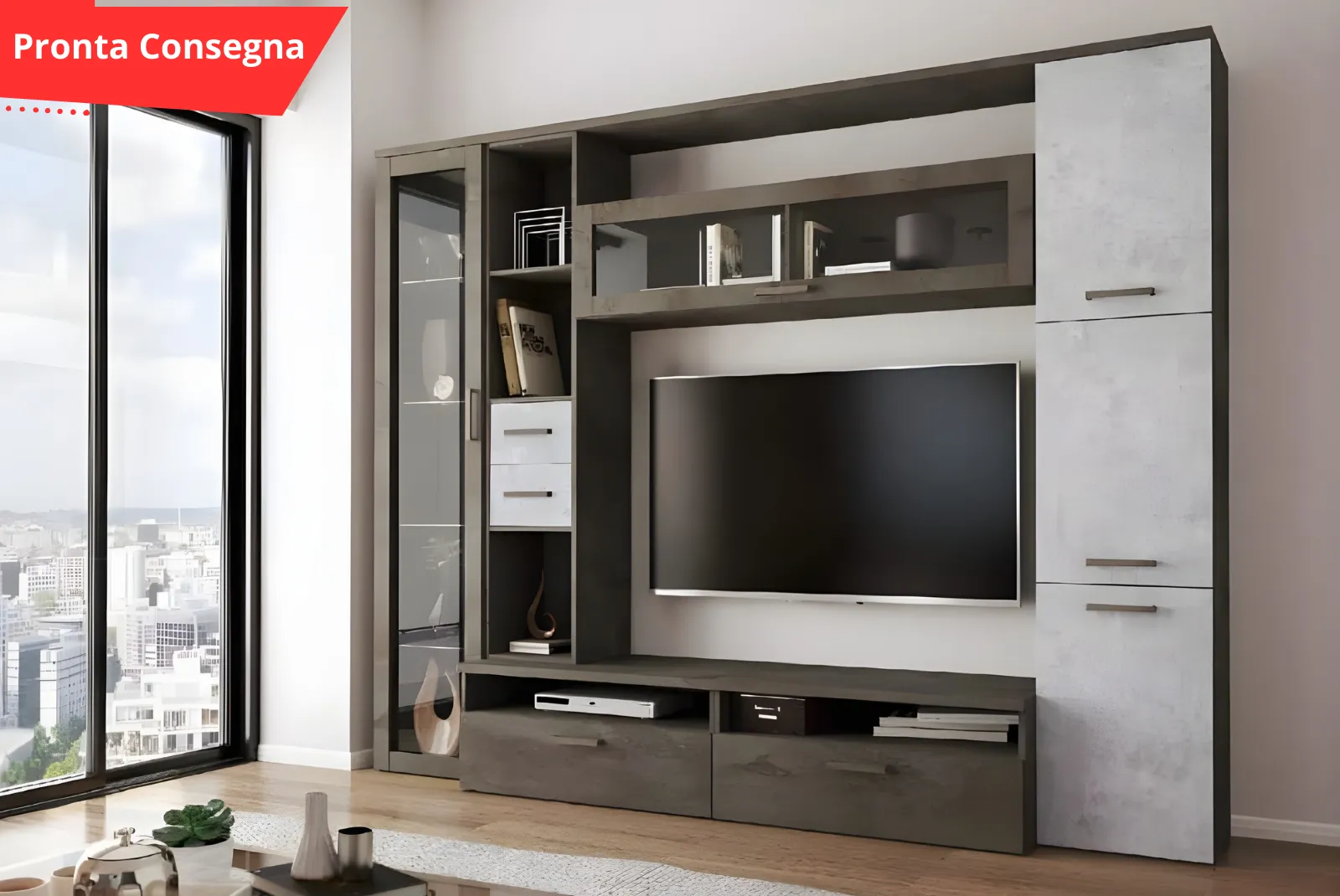 Questa Parete attrezzata Hercules “Pronta Consegna” è la soluzione perfetta per chi desidera un complemento d’arredo elegante, funzionale e versatile. Offre ampio spazio per riporre libri, TV, oggetti decorativi e molto altro ancora. Il suo design moderno e raffinato si adatta perfettamente a qualsiasi stile d’arredo.