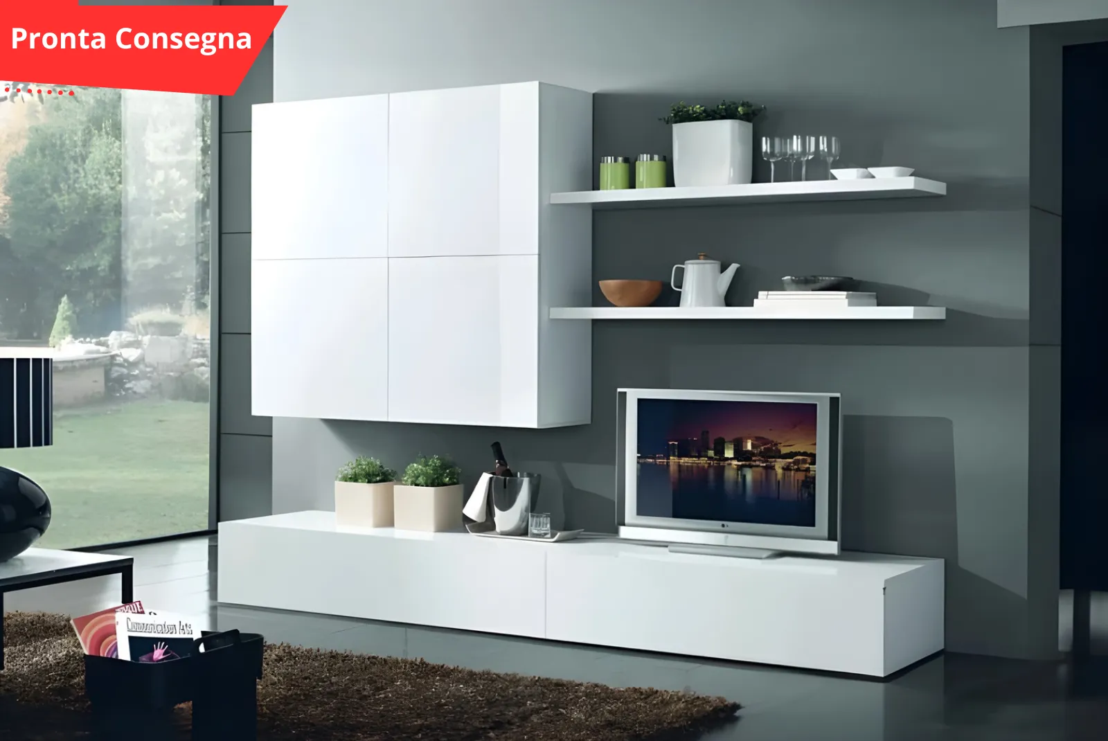 Parete Attrezzata – Nox Bianco “Pronta Consegna”! Non perdere questa occasione per arredare il tuo soggiorno con stile e funzionalità.