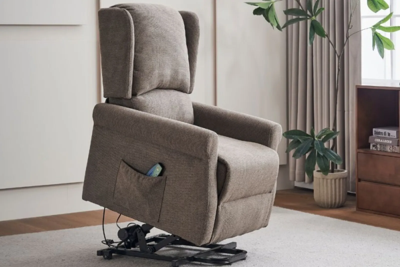 Poltrona alzapersona Tasmania con recliner elettrico Coffee