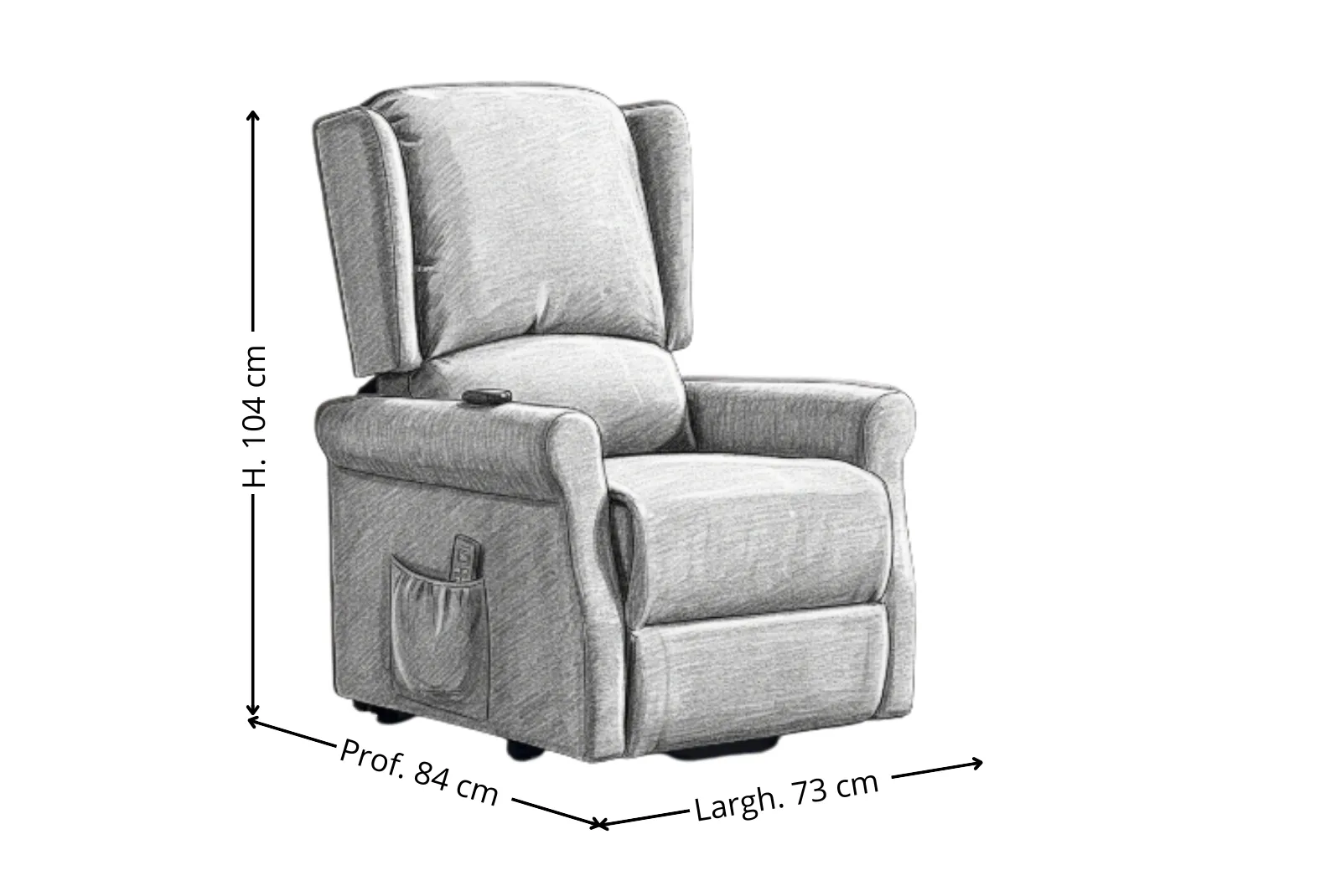 Trasforma il tuo soggiorno con la Poltrona alzapersona Tasmania con recliner elettrico Grigio. Lasciati avvolgere dal comfort impareggiabile di questa poltrona e concediti momenti di relax senza paragoni, grazie al sistema reclinabile elettrico azionabile con telecomando.