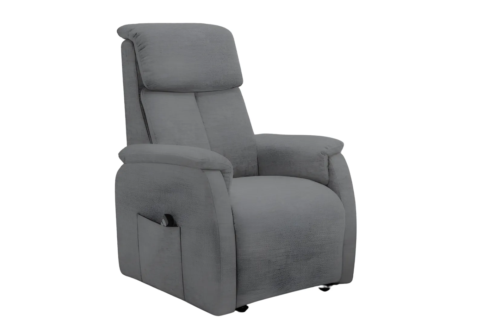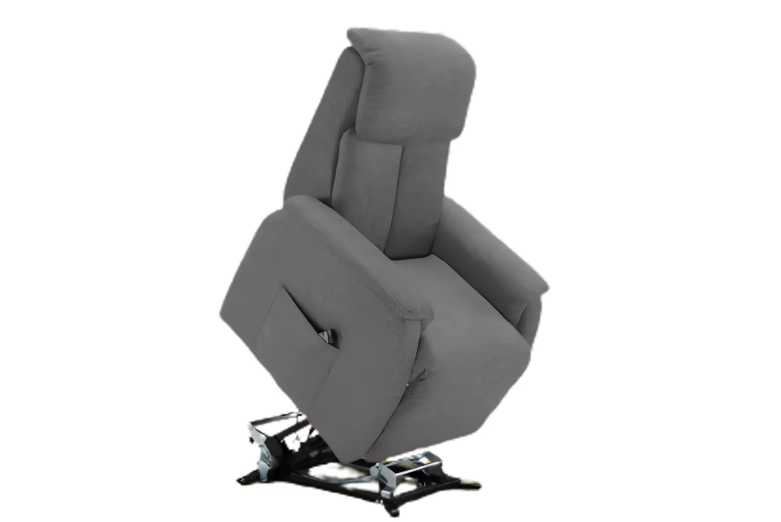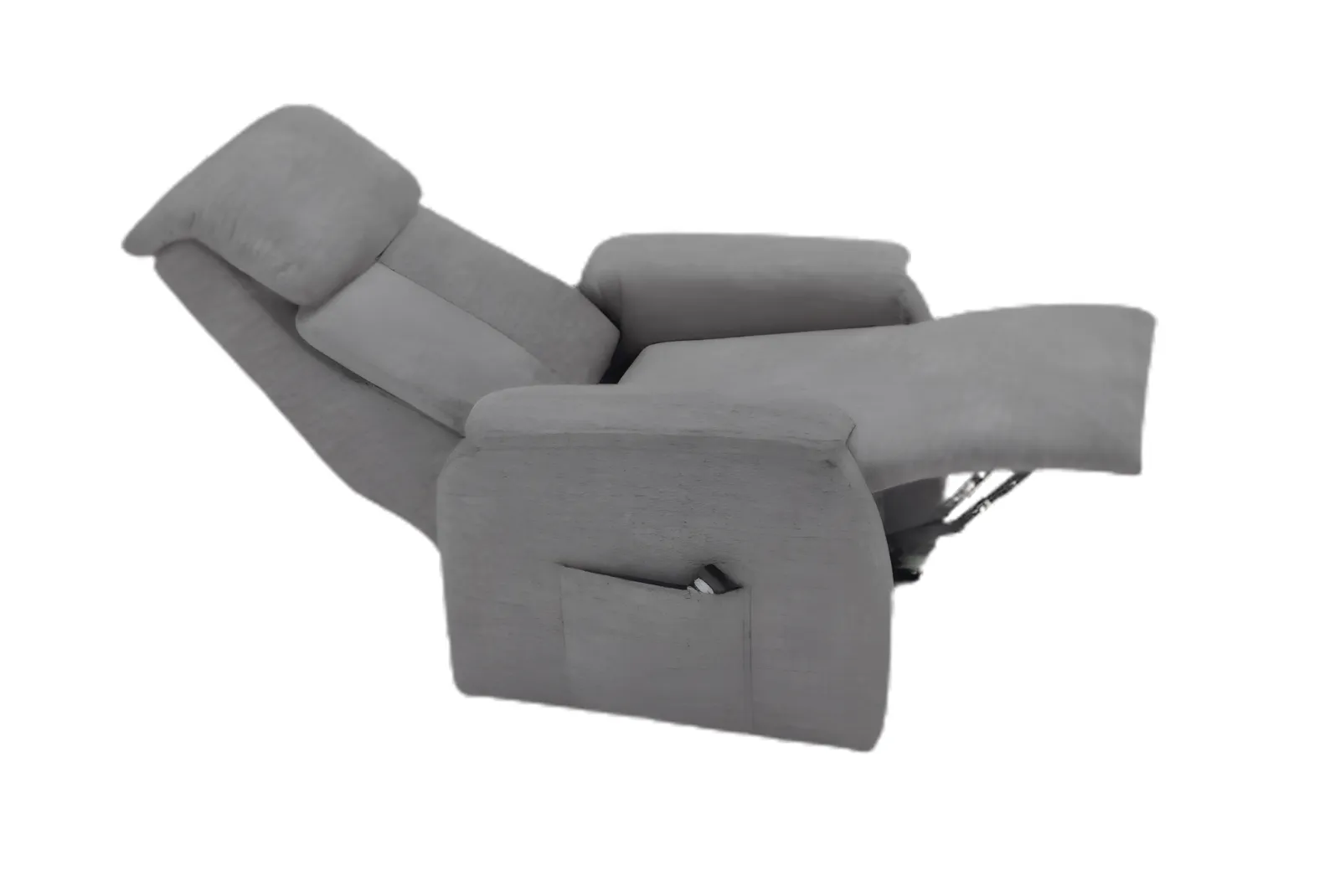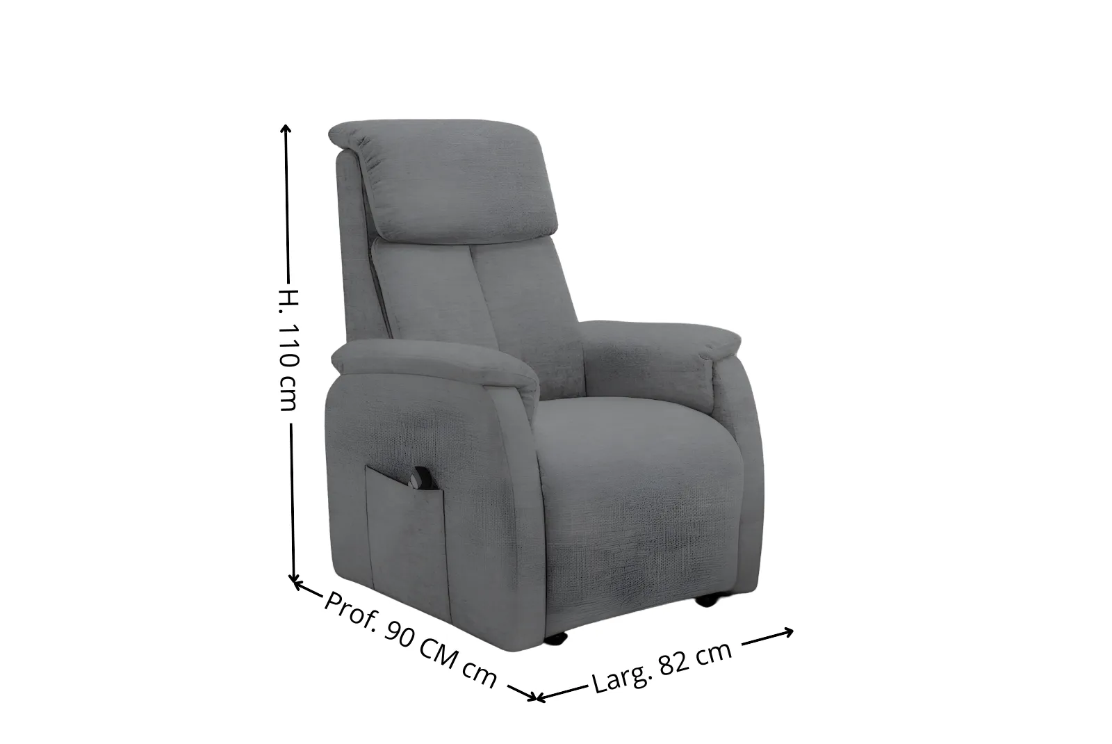 Poltrona dotata di motore elettrico con meccanismo alza persona azionabile con telecomando. Il sistema permette di assumere varie posizioni inclinando contemporaneamente lo schienale ed il poggiapiedi fino alla posizione: