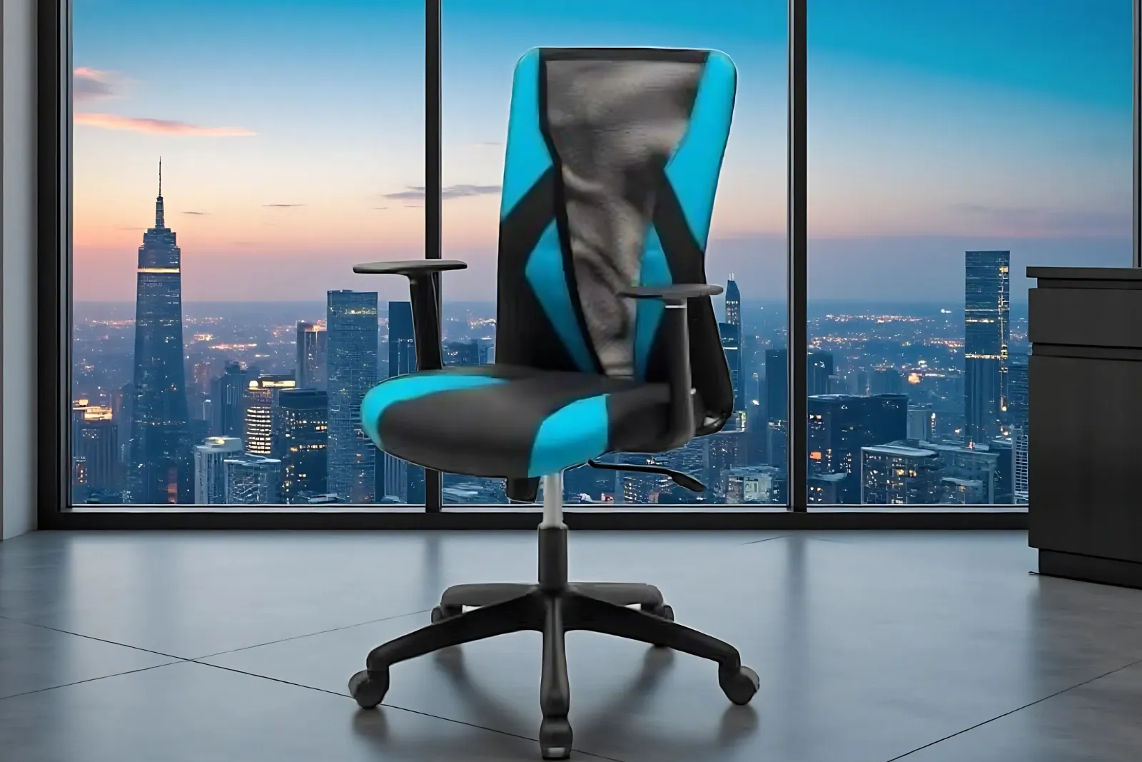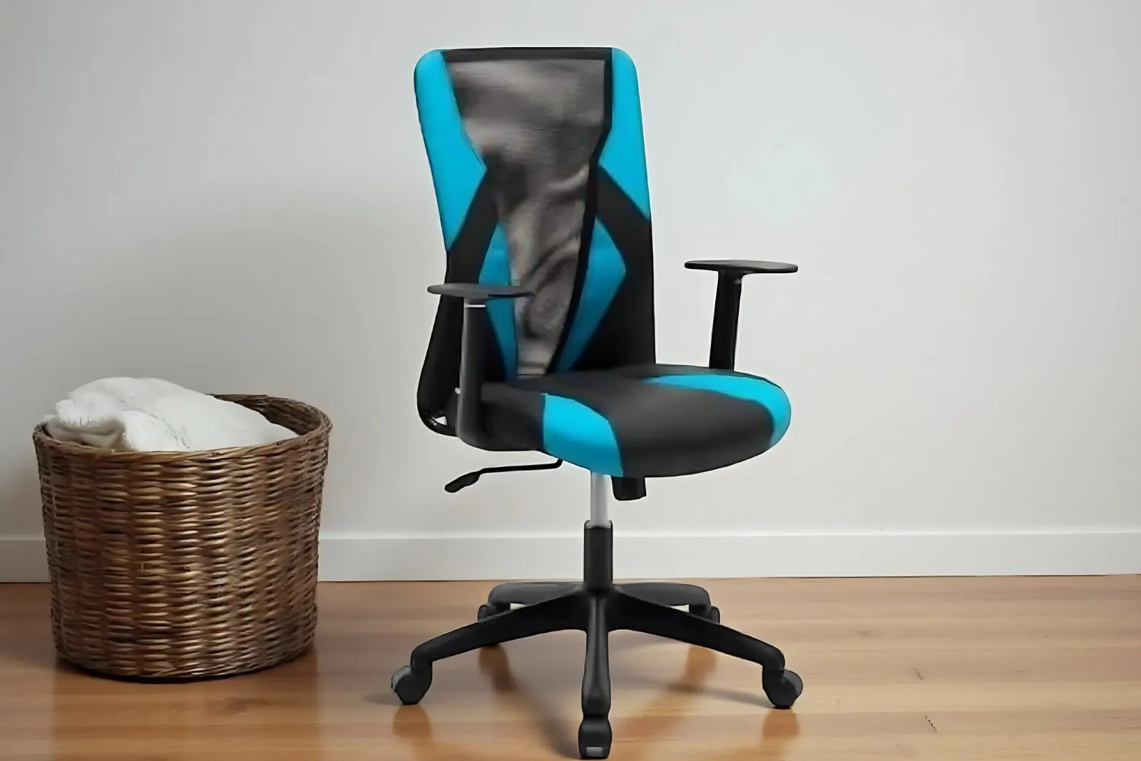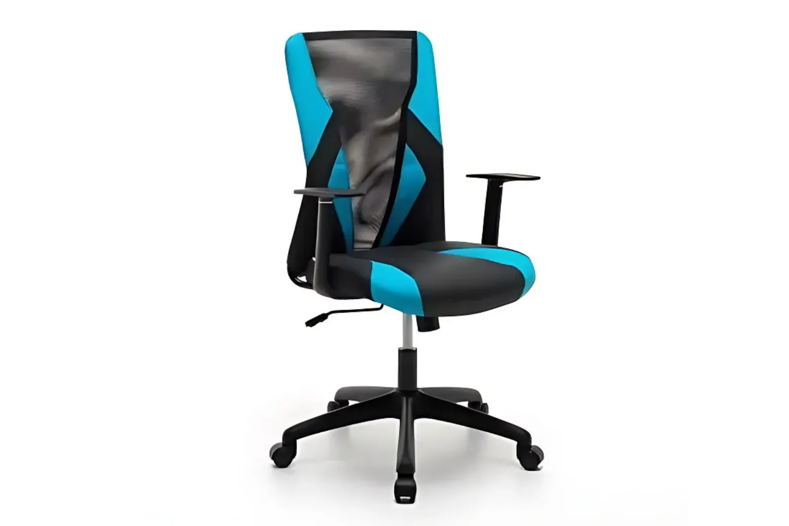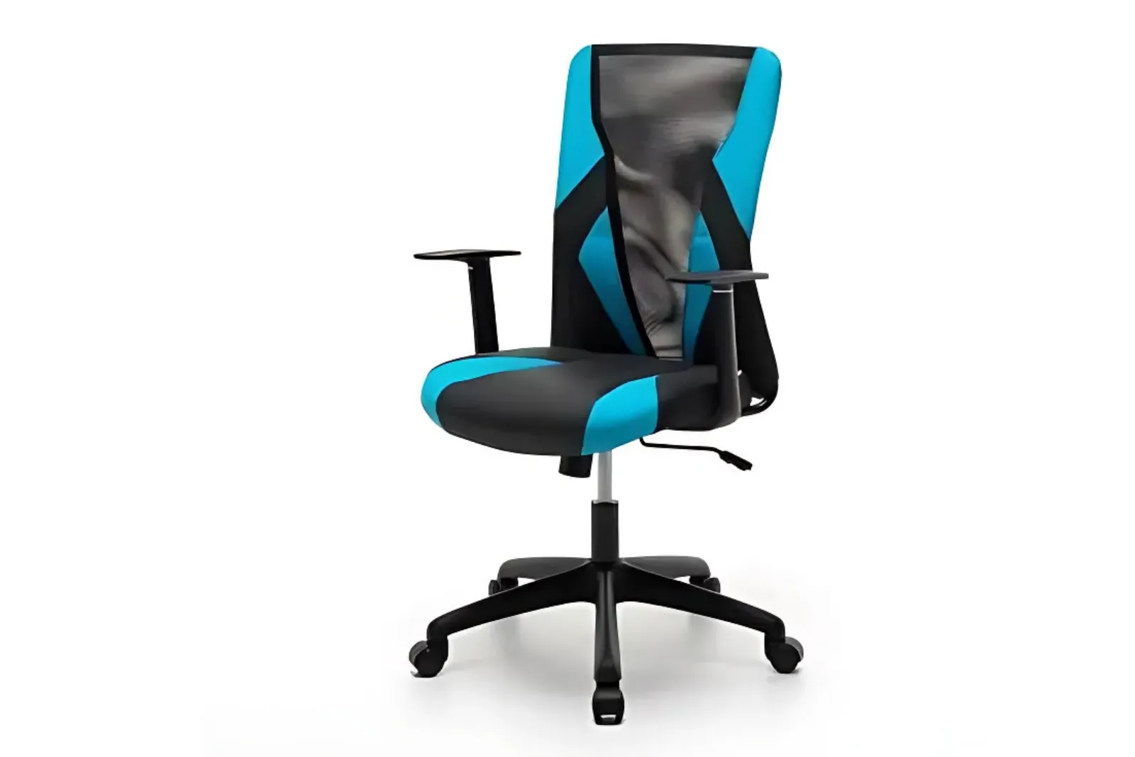 - Seduta e schienale: Rivestimento in tessuto misto similpelle e a rete nero e azzurro