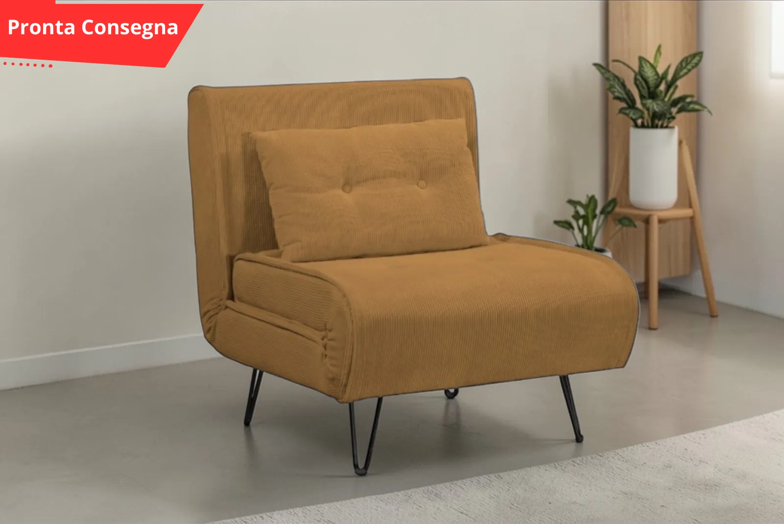 La poltrona letto Quarzo senza braccioli Mostarda, rappresenta un complemento d’arredo raffinato e versatile. Si adatta perfettamente a qualsiasi ambiente, sia esso un soggiorno moderno o una camera da letto dallo stile classico.