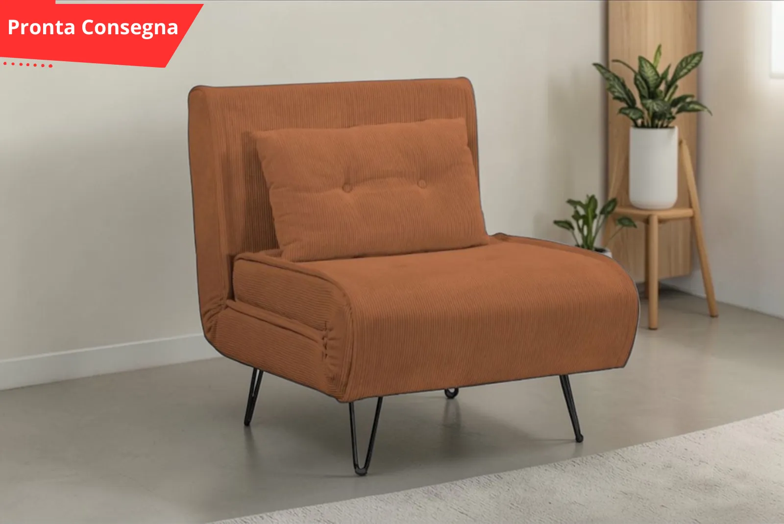 La poltrona letto Quarzo senza braccioli Ruggine, rappresenta un complemento d’arredo raffinato e versatile. Si adatta perfettamente a qualsiasi ambiente, sia esso un soggiorno moderno o una camera da letto dallo stile classico.