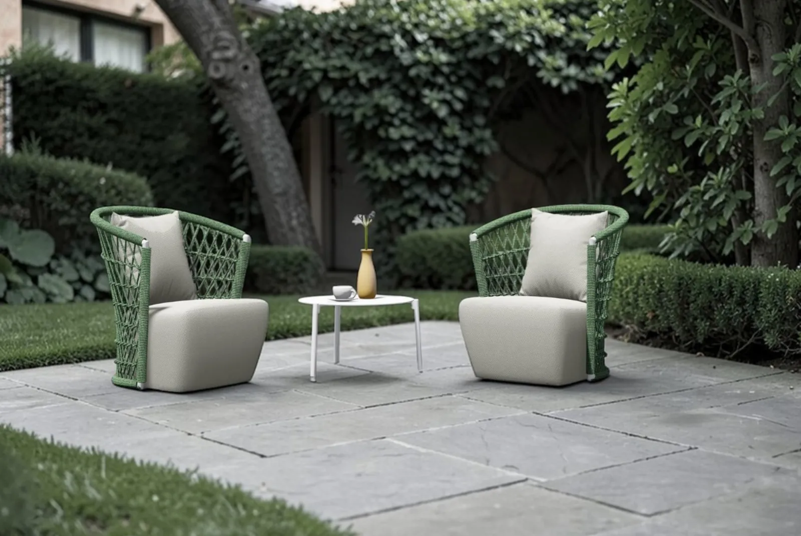 La Poltrona Muses con braccioli finitura Verde è un complemento d’arredo ideale per chi desidera combinare eleganza e comfort nel proprio spazio all’aperto. Progettata per resistere agli agenti atmosferici, questa poltrona offre uno stile sofisticato e una funzionalità pratica per terrazze, giardini o balconi.