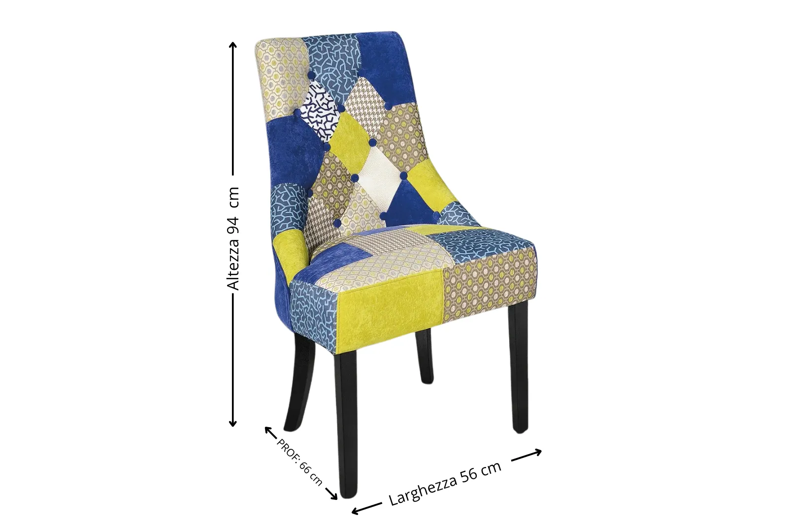 - Dimensioni: L.56 – Prof.66 – H. 94 – Altezza sopra sedile 49 cm