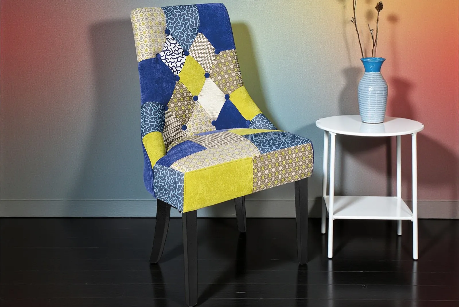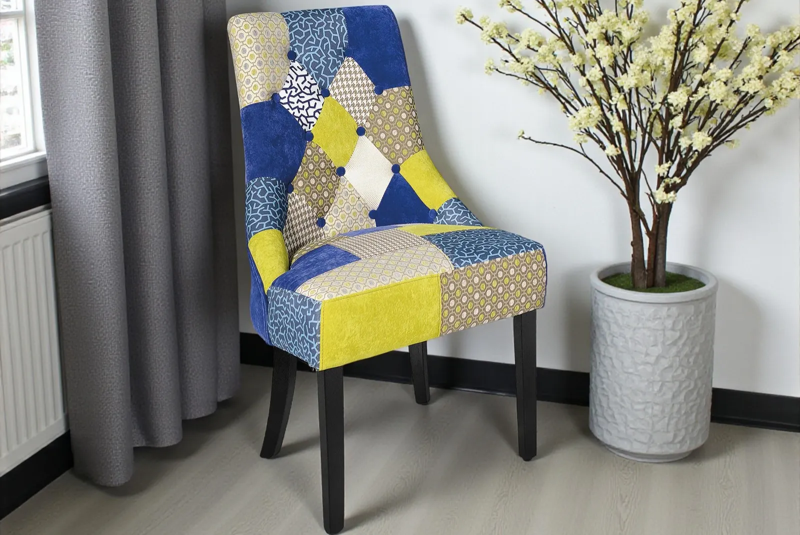 Relax assoluto con questa Poltrona Patchwork Siri in tessuto dal design moderno e accogliente. La struttura in legno garantisce robustezza e durata, mentre l’imbottitura in tessuto offre un comfort impareggiabile. Perfetta per arredare il soggiorno, la camera da letto o qualsiasi altro ambiente della casa, questa poltrona diventerà il tuo rifugio preferito per momenti di relax.