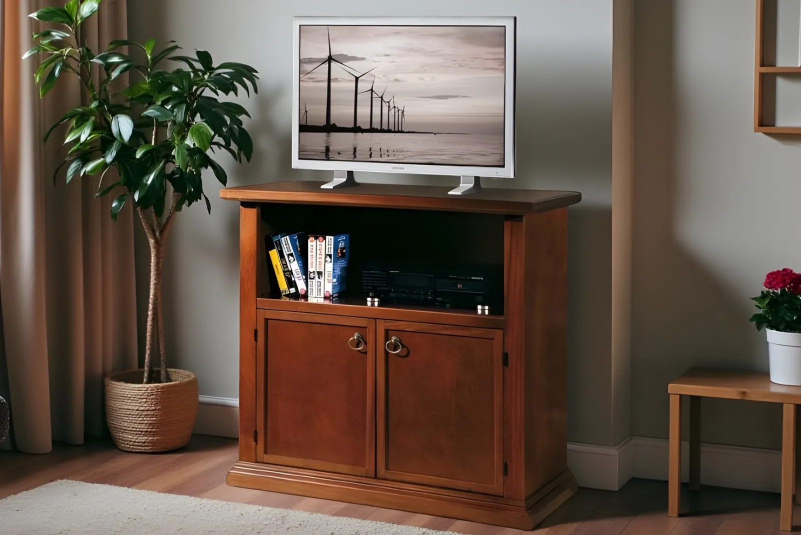 Porta la semplicità della natura nel tuo salotto con questa elegante Porta TV 2porte + vano anta a telaio stile Arte Povera. Realizzata con materiali naturali e lavorata a mano.