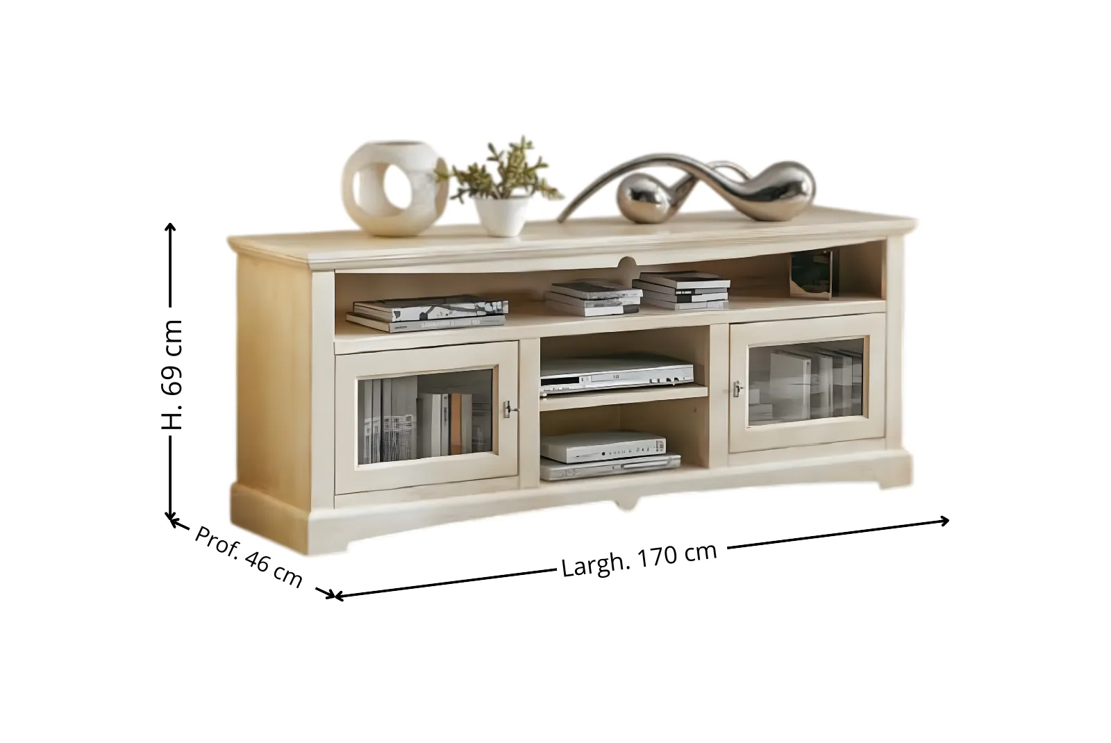 La Porta TV Finitura avorio patinato è un elemento d’arredo versatile e funzionale, ideale per chi desidera combinare eleganza e praticità nel proprio ambiente. La porta TV può facilmente adattarsi a qualsiasi tipo di arredamento, dal classico al moderno.