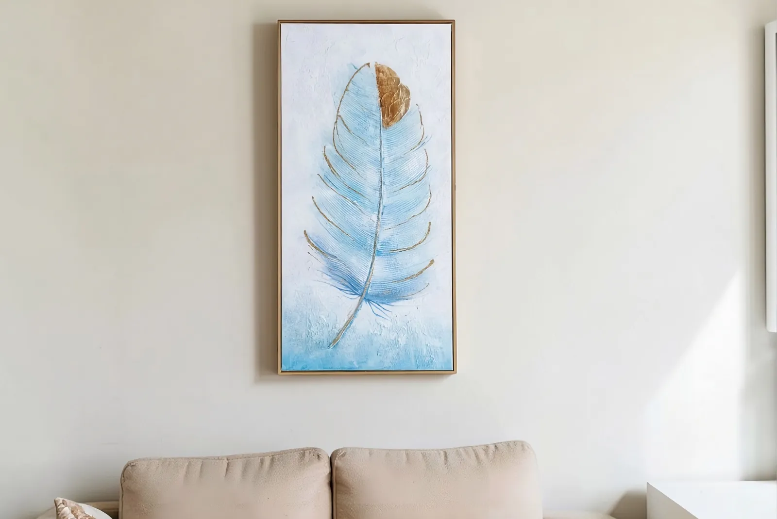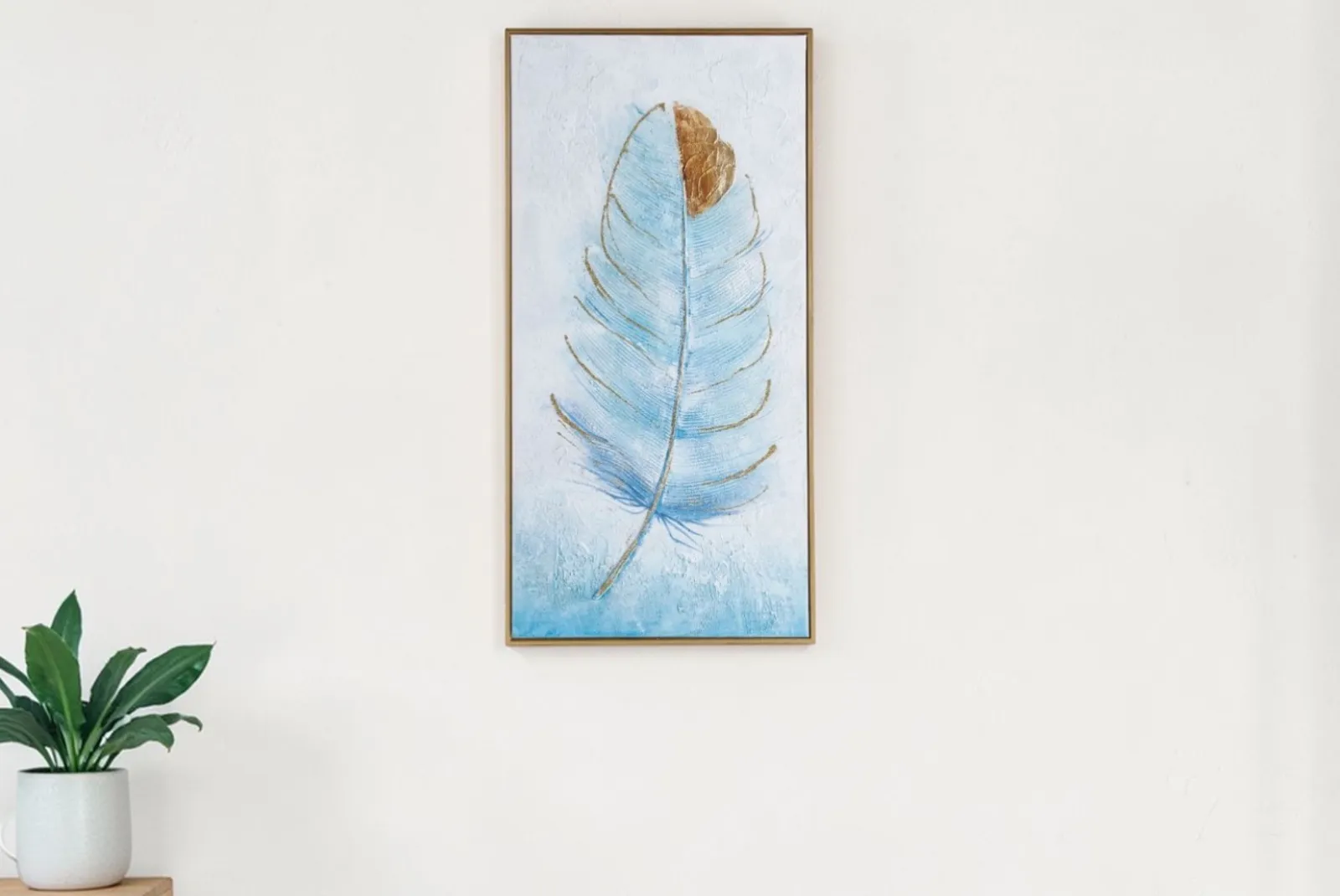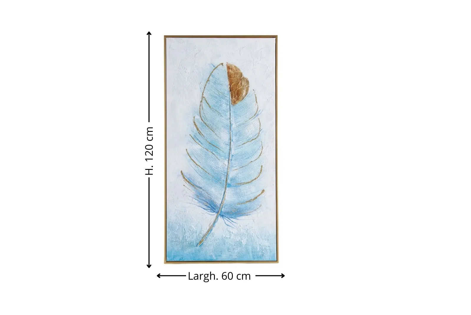 Clicca qui per ulteriori informazioni!Quadro Piuma su tela cornice Oro è un’opera d’arte che evoca delicatezza e armonia, unendo la purezza del colore azzurro alla luminosità dei dettagli dorati. Il soggetto piuma, simbolo di leggerezza e libertà, sembra fluttuare su uno sfondo etereo, creando un effetto visivo rilassante e sofisticato.