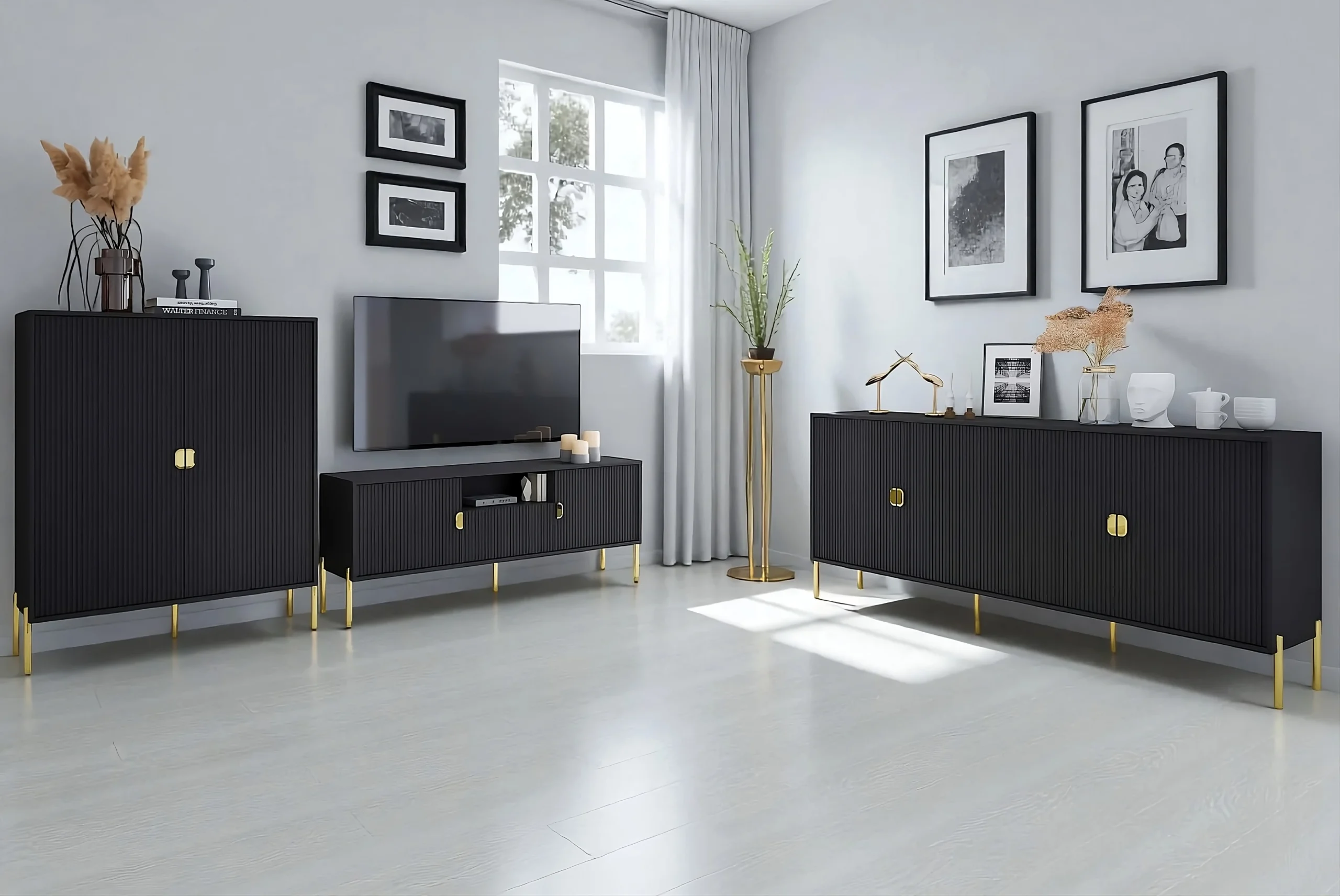 Ma non è solo bella da vedere! La nostra Sala Lotus nero “Pronta Consegna” è anche incredibilmente funzionale. Offre ampio spazio per riporre stoviglie, libri e altri oggetti. Le sue ante scorrevoli e i suoi cassetti sono dotati di meccanismi di apertura e chiusura morbidi e silenziosi, per un utilizzo confortevole e senza sforzo.