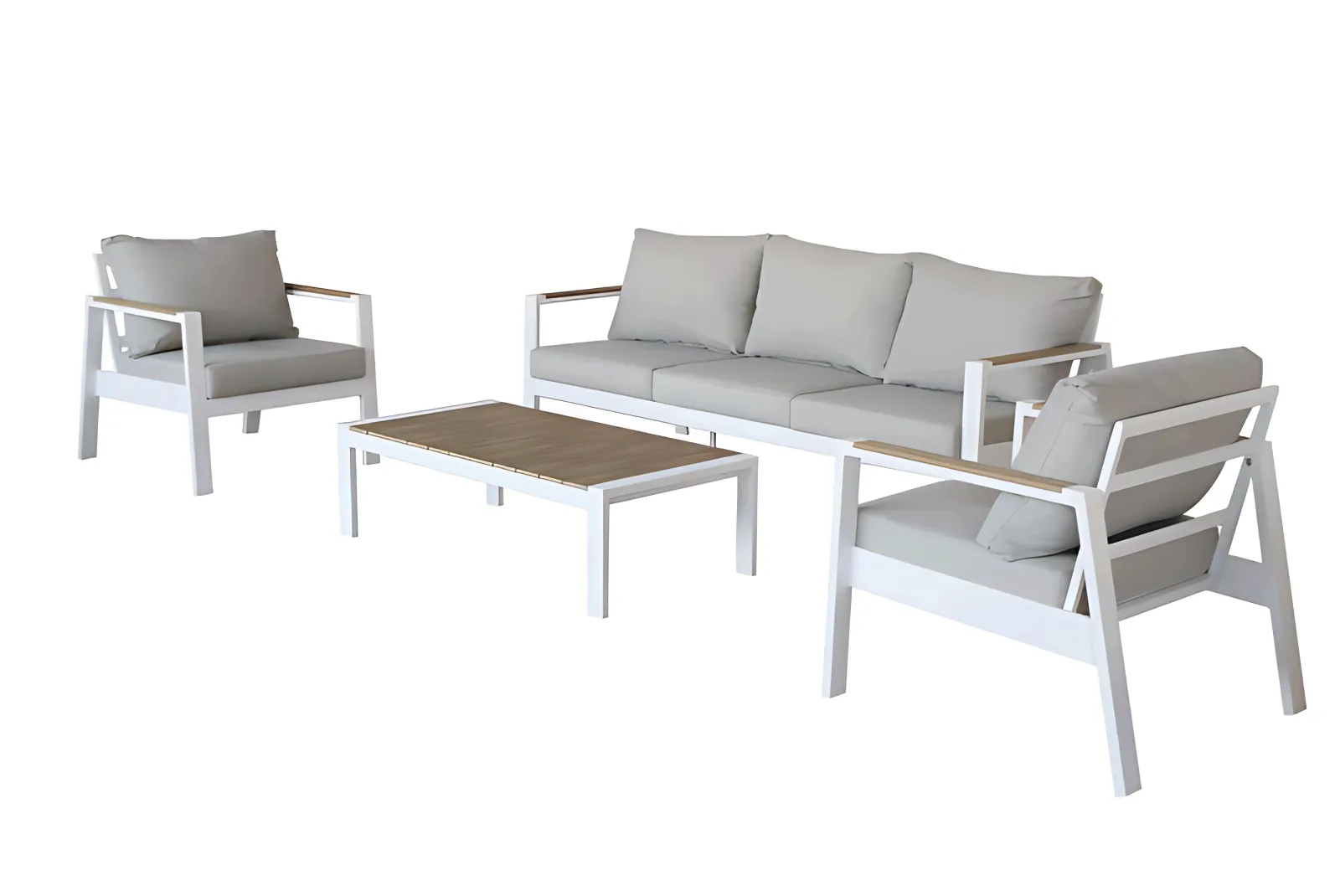 Arreda la tua zona giardino con stile e comfort con il nostro Salottino Santorini 5 Posti Bianco