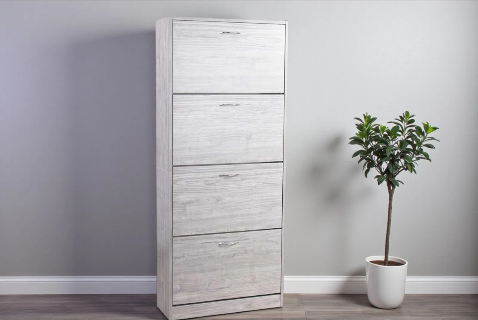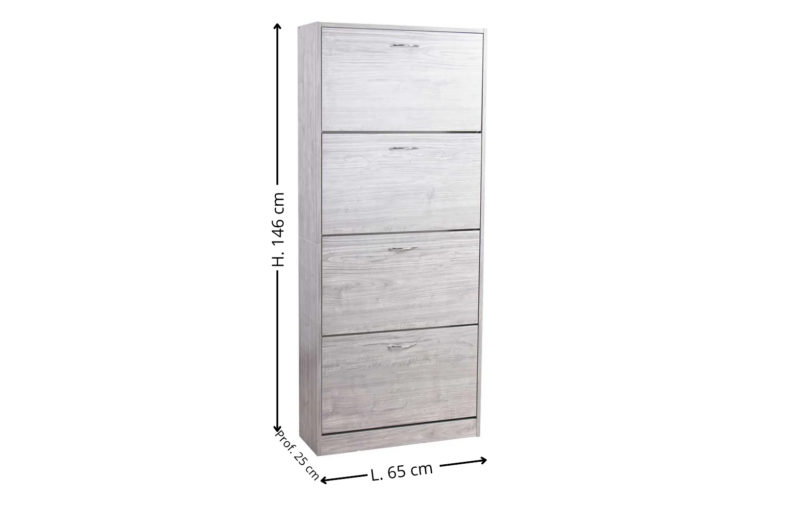 Questa Scarpiera London 4A Grigio legno è la soluzione ideale per chi cerca un complemento d’arredo versatile, pratico e salvaspazio. Design moderno e finitura grigio legno per un tocco di luminosità e un’estetica adattabile a qualsiasi ambiente.