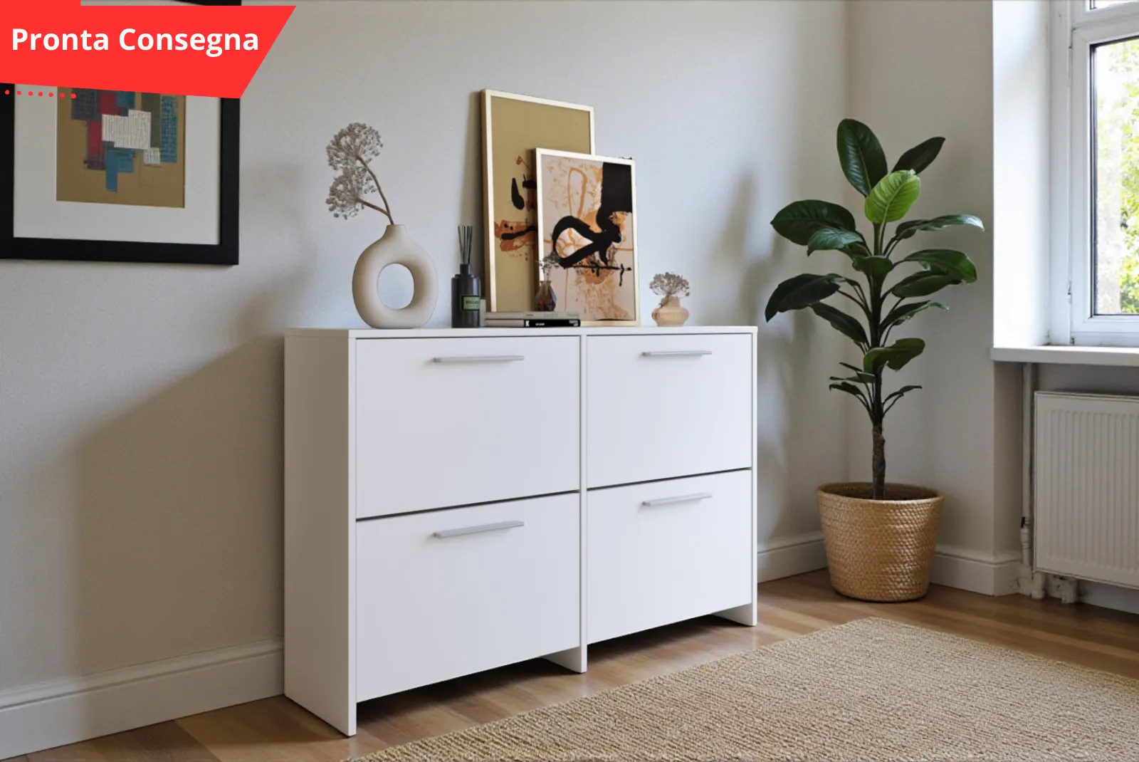 Elegante e comoda , la scarpiera 4 ribalte , si adatta a tutti gli stili della casa , dal moderno al contemporaneo al classico.